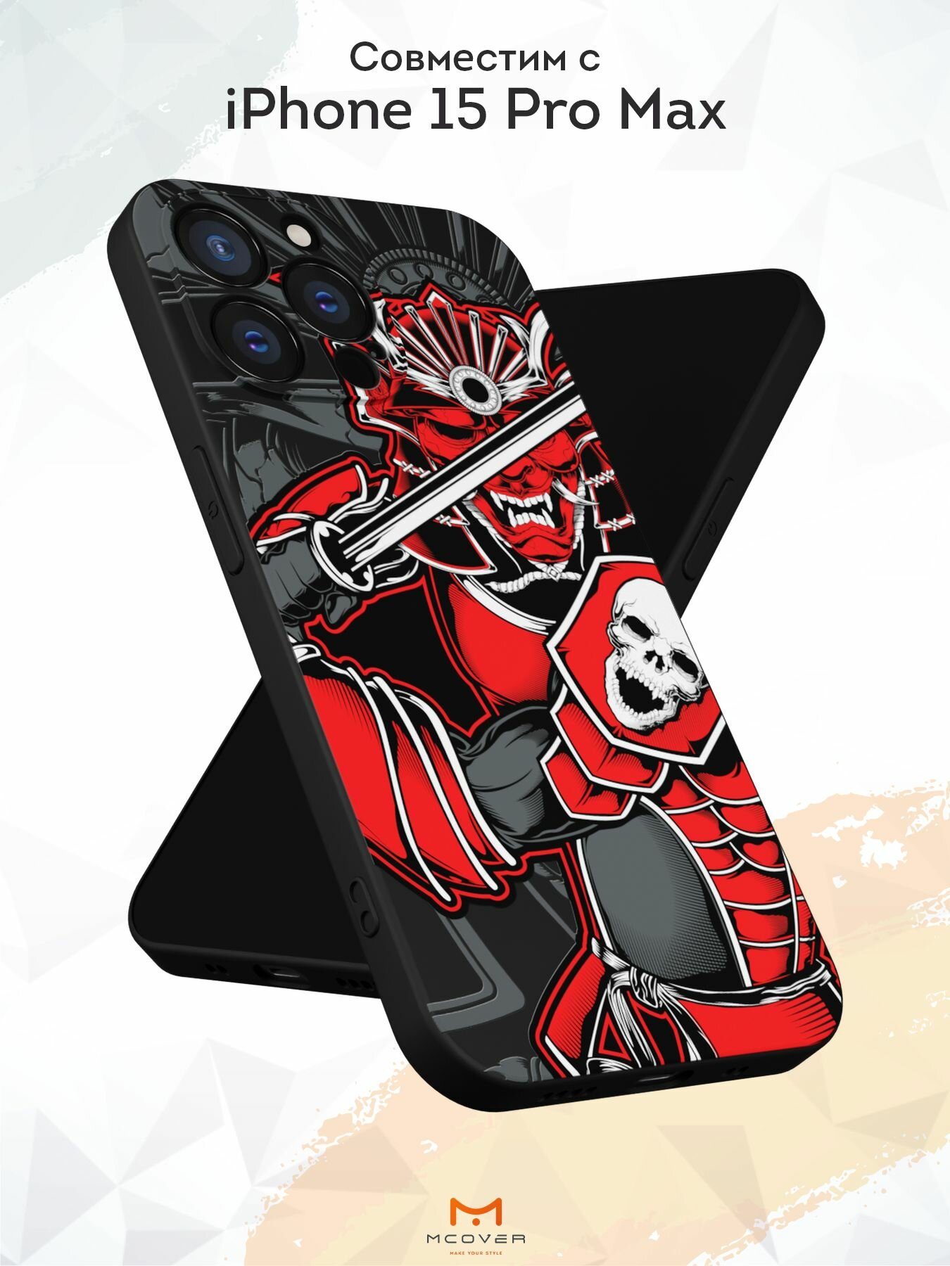Чехол Mcover с рисунком Самурай Катана на iPhone 15 Pro Max, силиконовый, матовый, защита камеры информация: