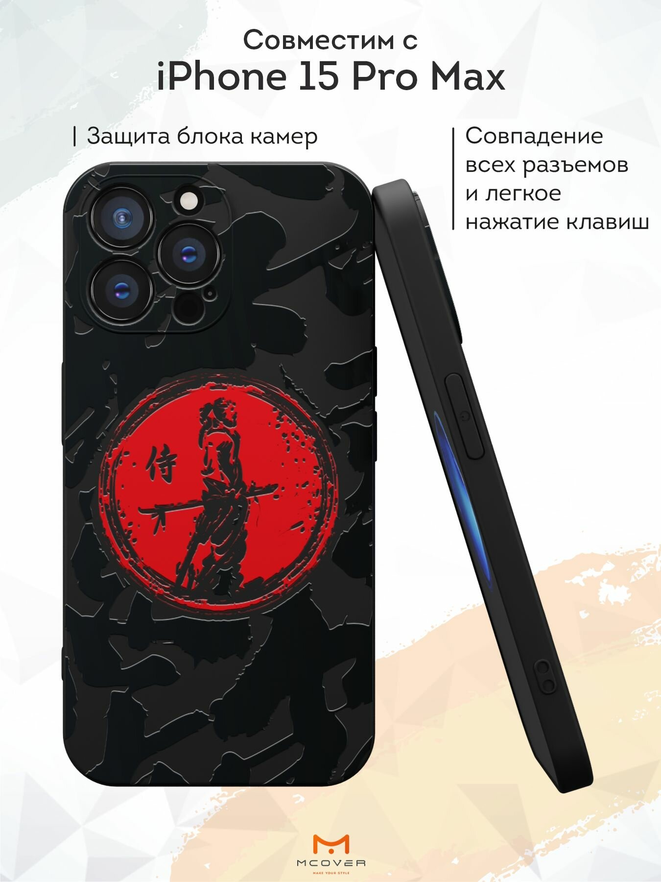 Чехол Mcover с рисунком Самурай Катана на iPhone 15 Pro Max, силиконовый, матовый, защита камеры 530 ₽