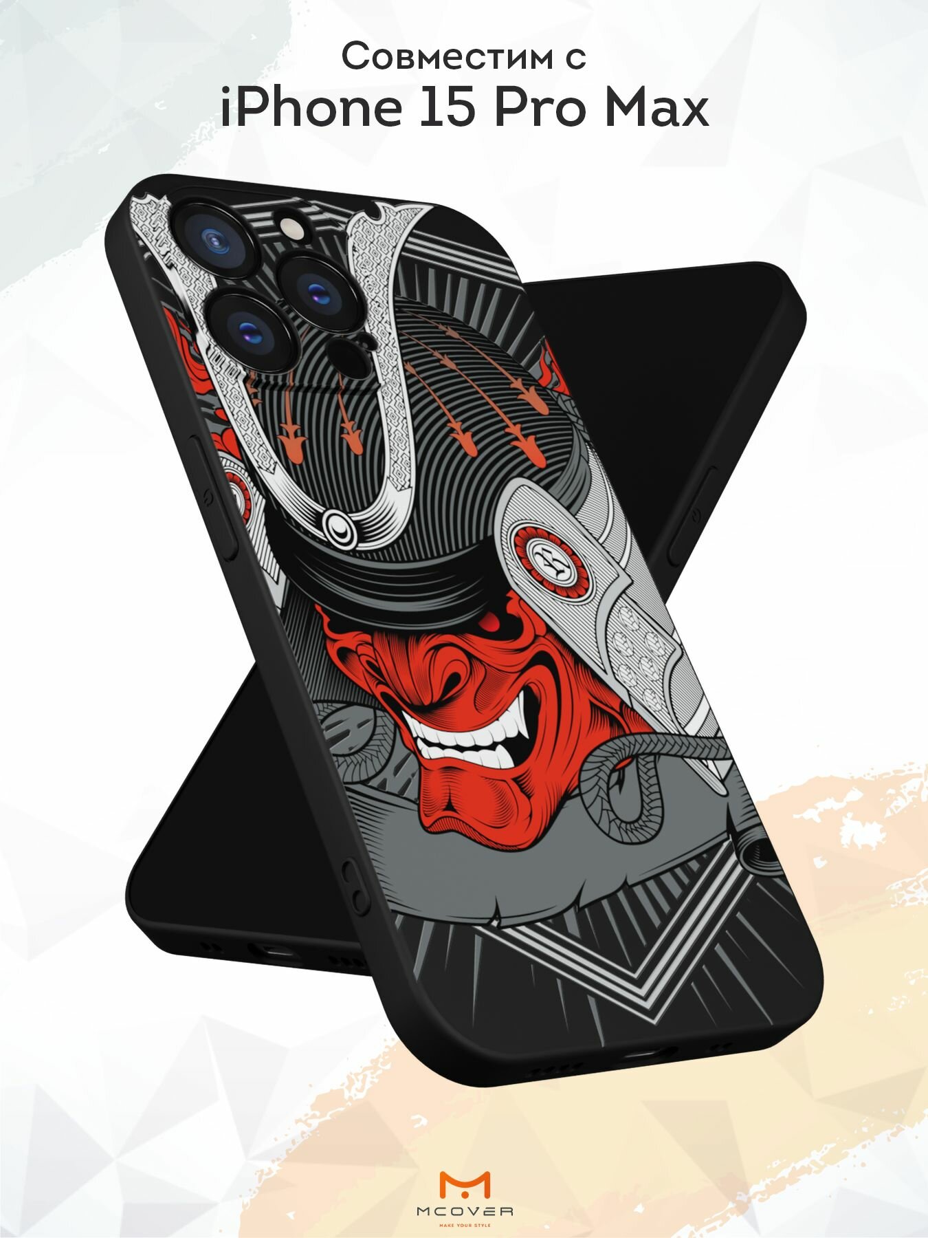 Чехол Mcover с рисунком Голова японского воина на iPhone 15 Pro Max, силиконовый, матовый, защита камеры 530 ₽