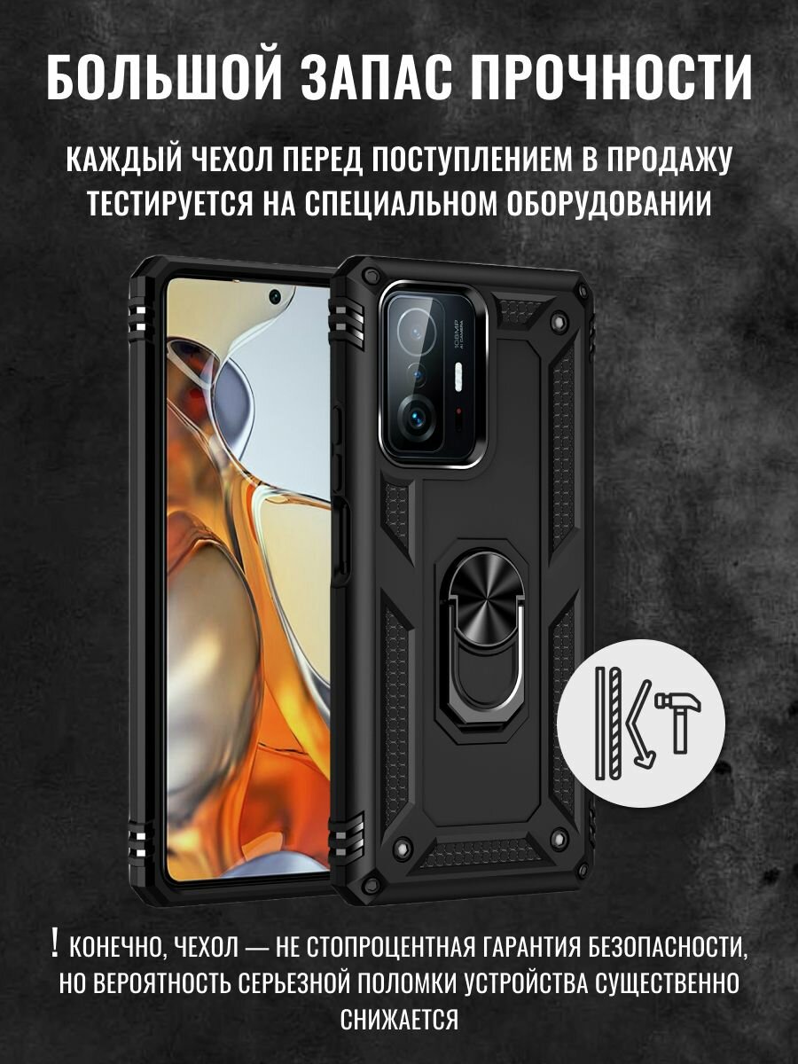 Чехол противоударный на Xiaomi 11T / Xiaomi 11 Pro защитный бампер на Сяоми 11Т / 11 про с кольцом-подставкой Черный информация: