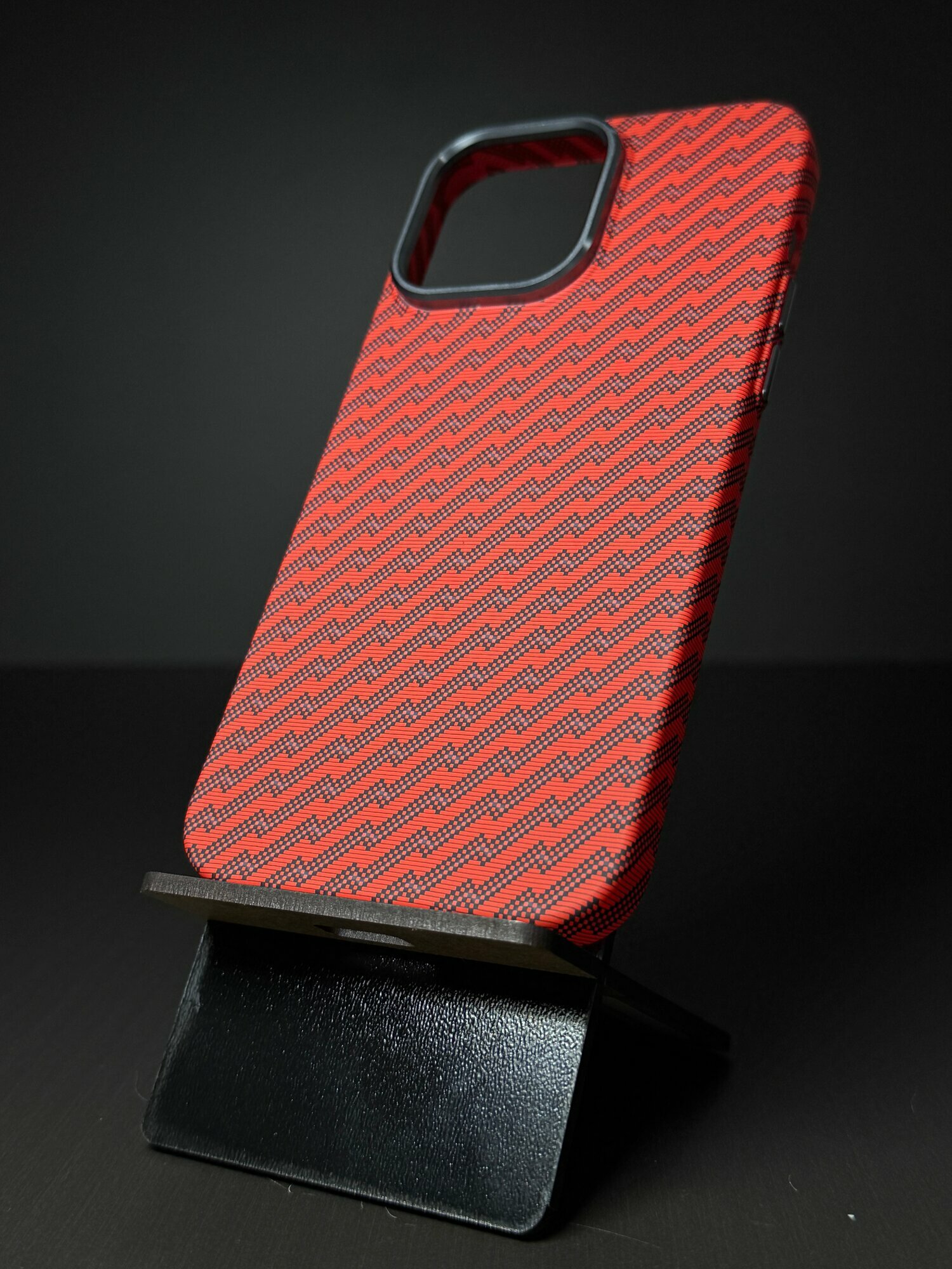 Отзывы на Чехол Айфон 14 Про Макс с МагСейф Кевлар / чехол iPhone 14 Pro Max с MagSafe LUXO Life+, красный с узором, карбоновый