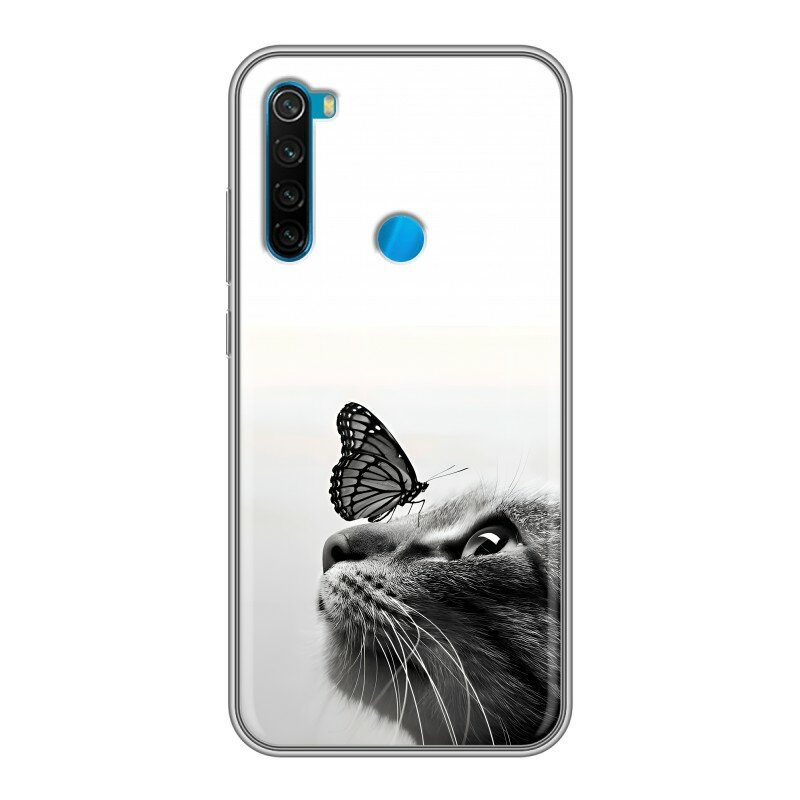 Чехол для Xiaomi RedMi Note 8 с принтом кот и бабочка на Сяоми Редми Нот 8 информация:
