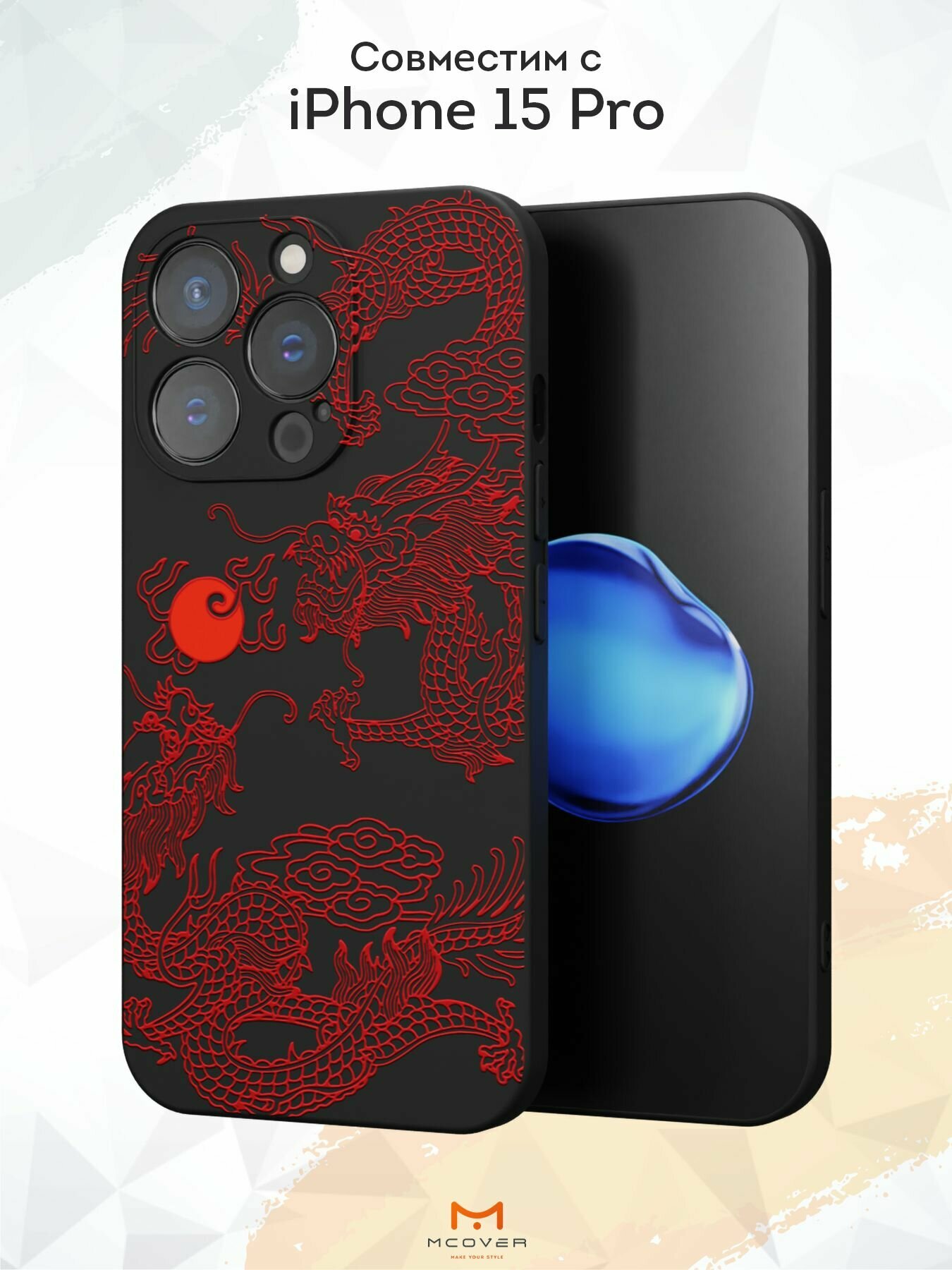 Чехол Mcover с рисунком Японский дракон янь / аниме на iPhone 15 Pro, силиконовый, матовый, защита камеры информация: