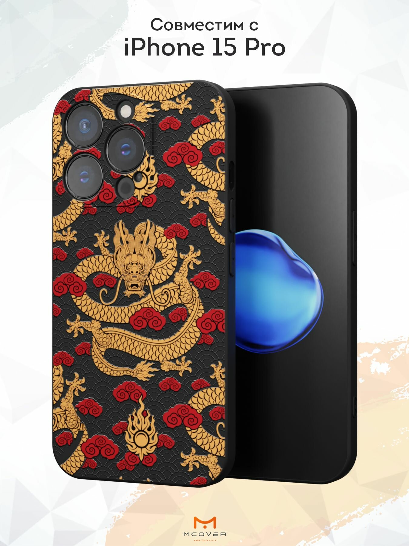 10 цен на Чехол Mcover с рисунком Золотой Дракон v.1 на iPhone 15 Pro, силиконовый, матовый, защита камеры