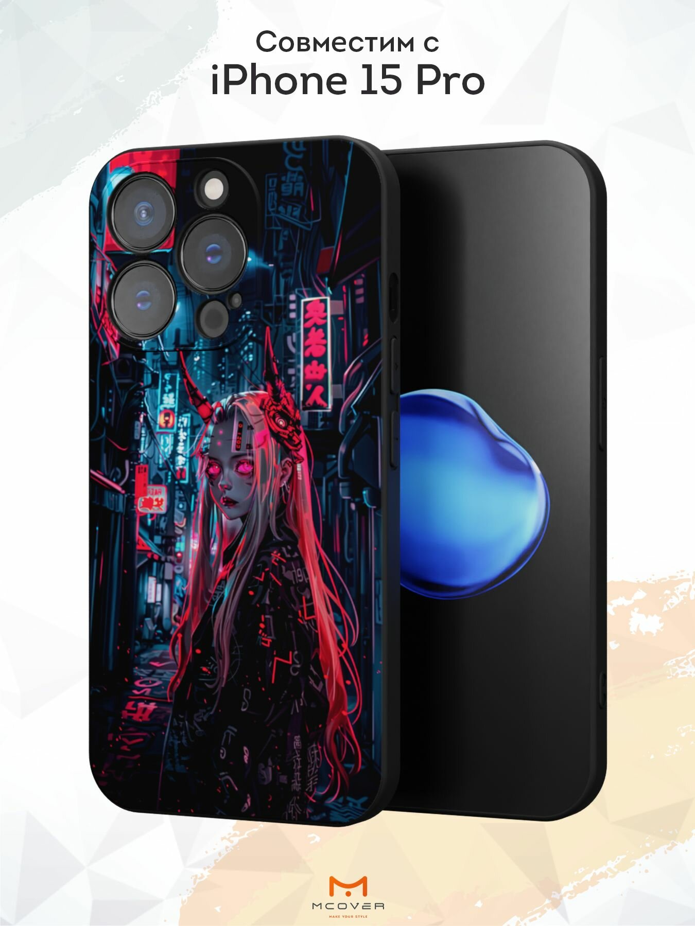 Чехол Mcover с рисунком Кибер Тян на iPhone 15 Pro, силиконовый, матовый, защита камеры информация: