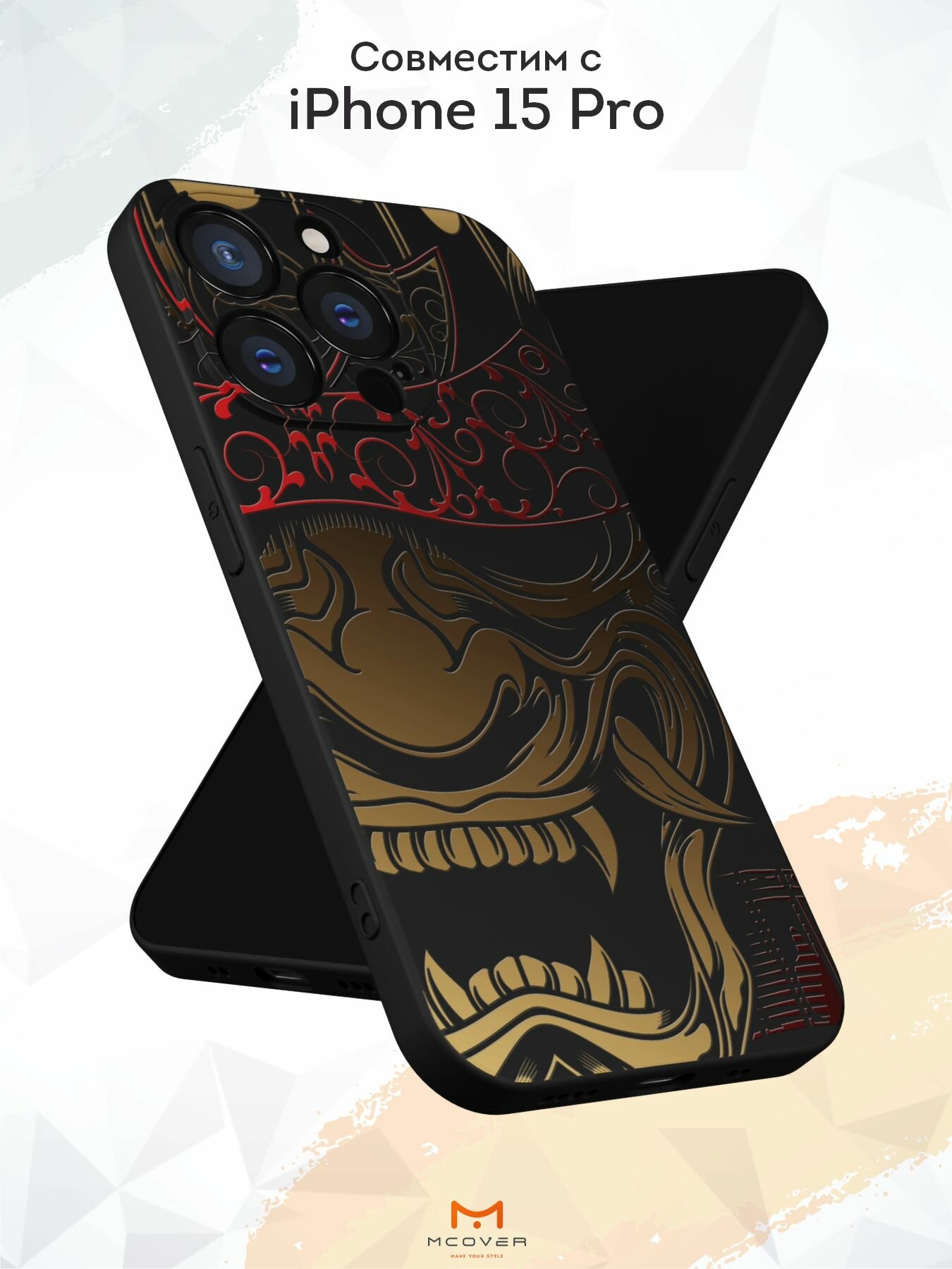 Чехол Mcover с рисунком Голова японского воина на iPhone 15 Pro, силиконовый, матовый, защита камеры 530 ₽