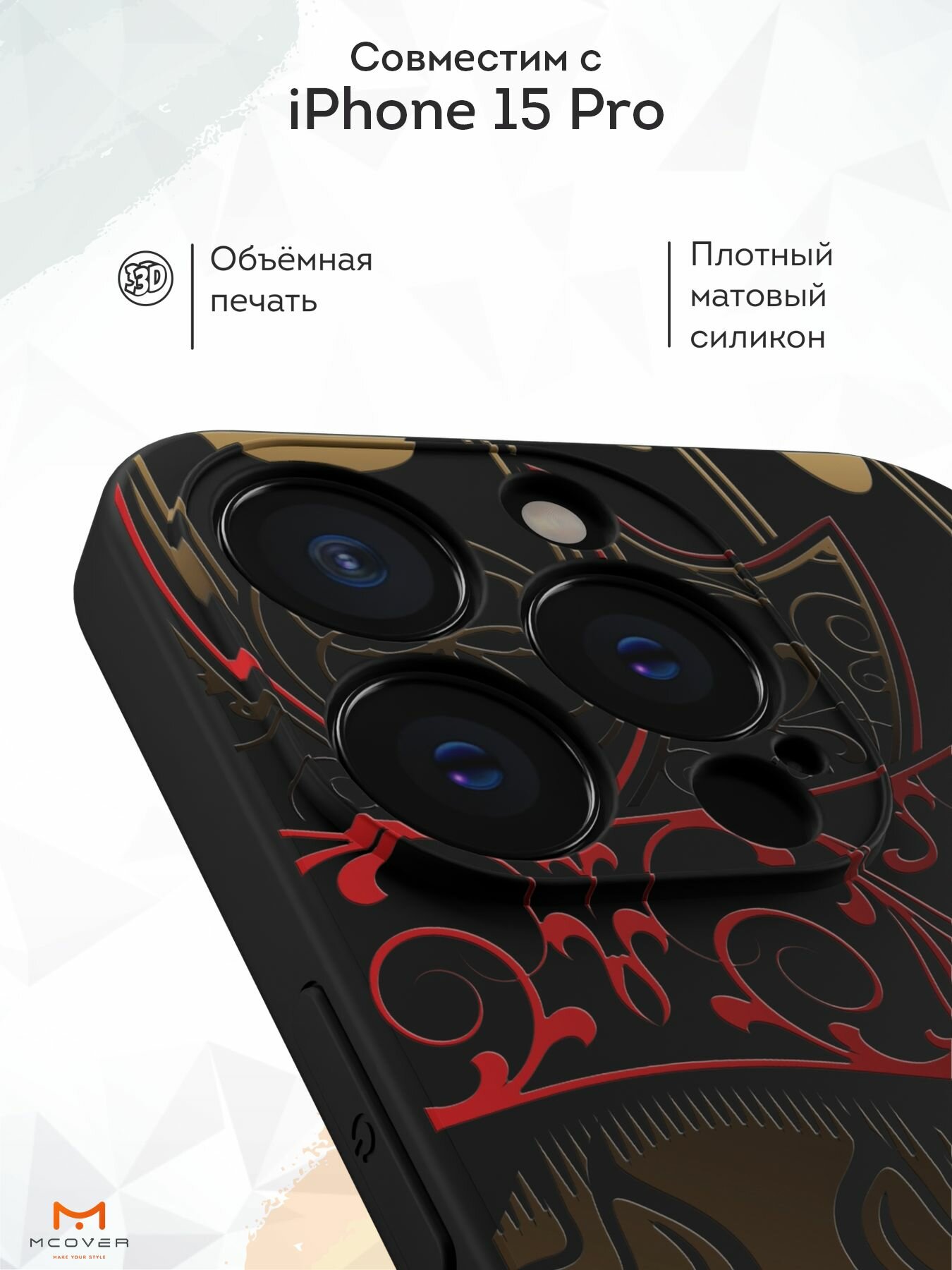 Чехол Mcover с рисунком Бронзовый железный воин на iPhone 15 Pro, силиконовый, матовый, защита камеры информация: