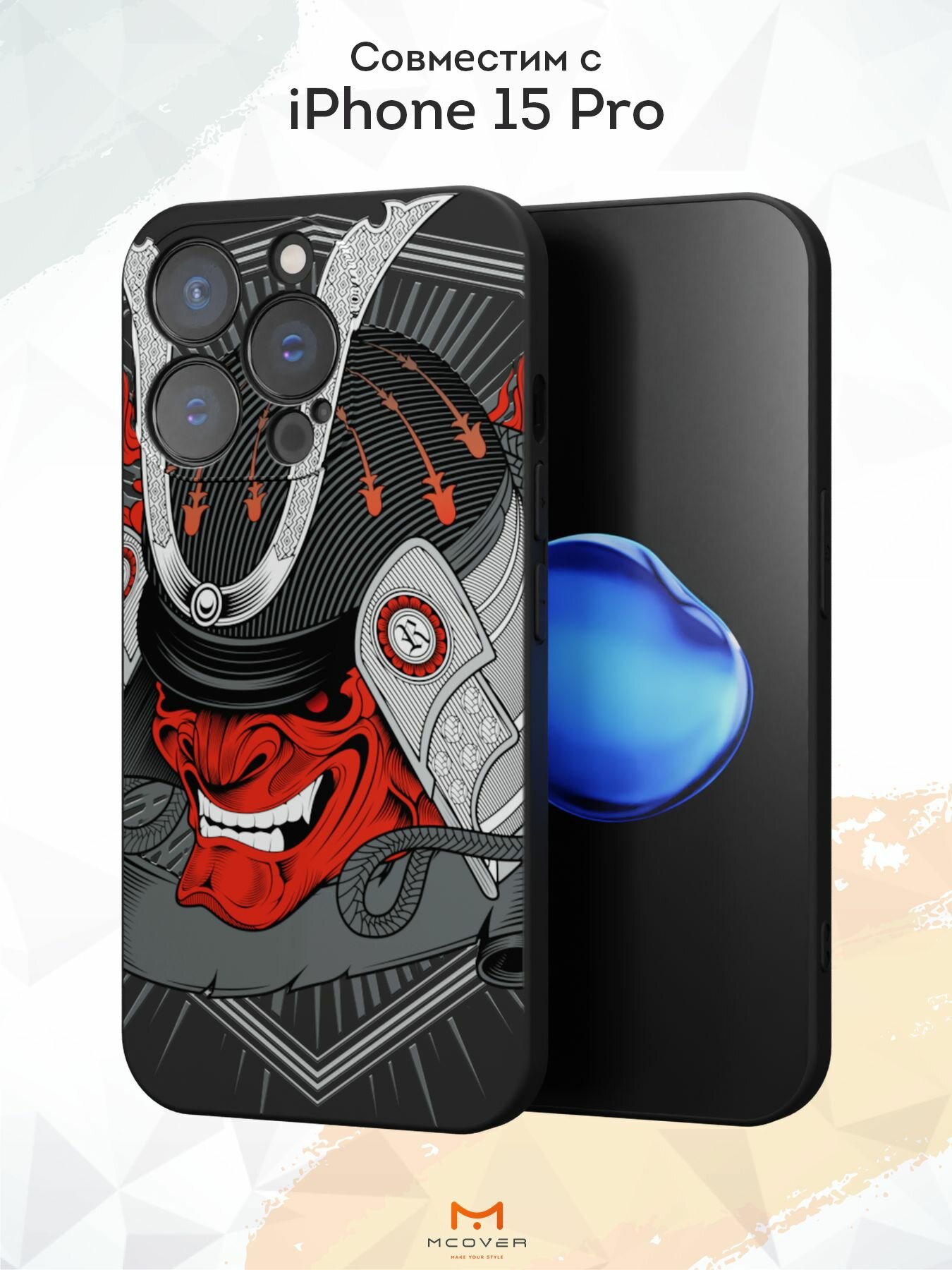 Чехол Mcover с рисунком Голова японского воина на iPhone 15 Pro, силиконовый, матовый, защита камеры 530 ₽