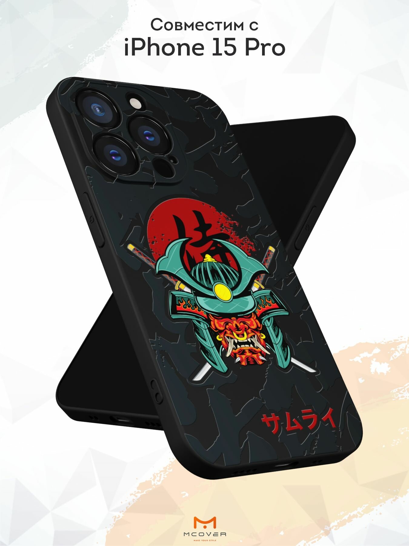 Чехол Mcover с рисунком Самурай Катана на iPhone 15 Pro, силиконовый, матовый, защита камеры 530 ₽