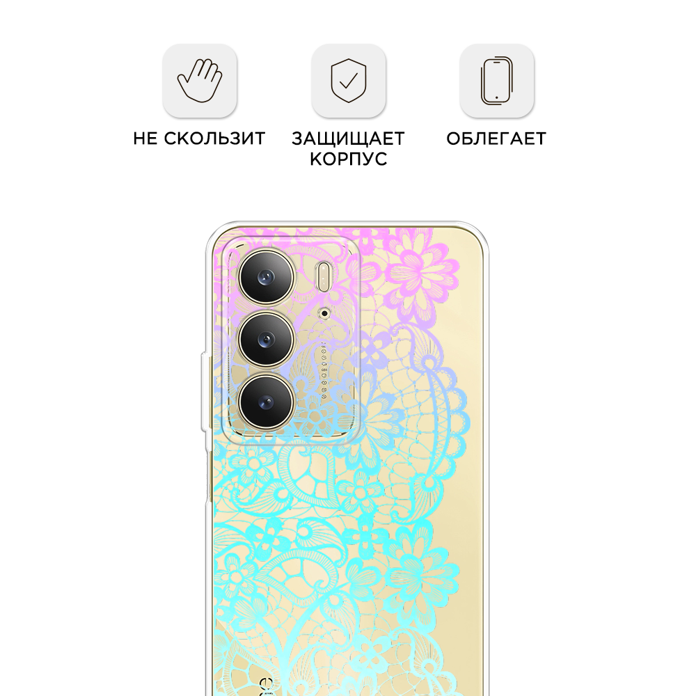 Чехол на Realme C75 4G / Реалми C75 4G с принтом Радужный кружевной узор, прозрачный информация: