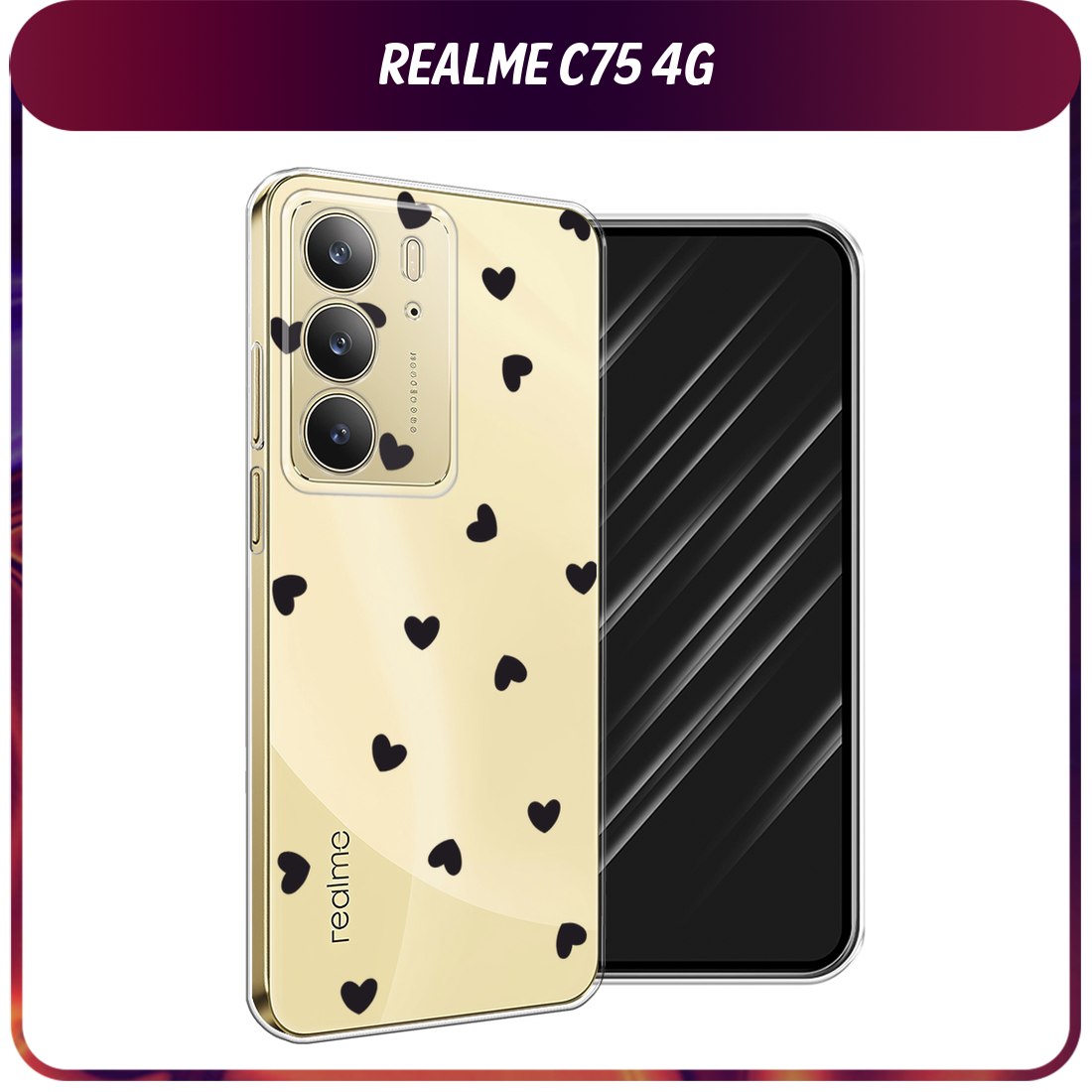 Отзывы на Чехол на Realme C75 4G / Реалми C75 4G с принтом Маленькие чёрные сердечки, прозрачный