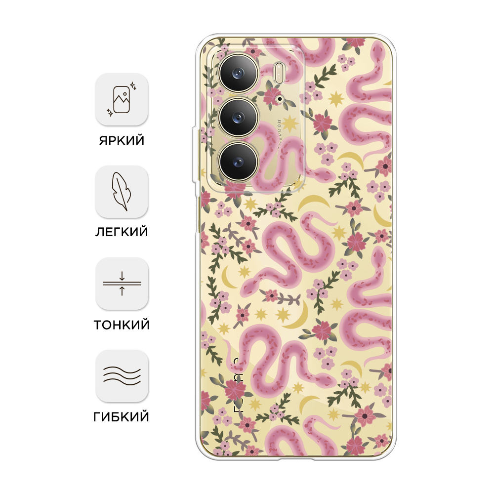 10 цен на Чехол на Realme C75 4G / Реалми C75 4G с принтом Розовые змеи, прозрачный