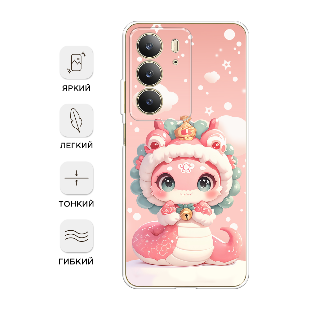 10 цен на Чехол на Realme C75 4G / Реалми C75 4G с принтом Розовая праздничная змейка 1