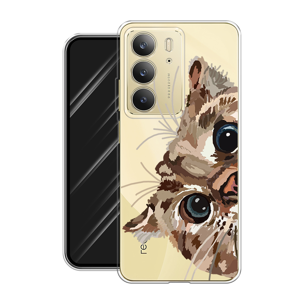 Чехол на Realme C75 4G / Реалми C75 4G с принтом Любопытный кот, прозрачный информация: