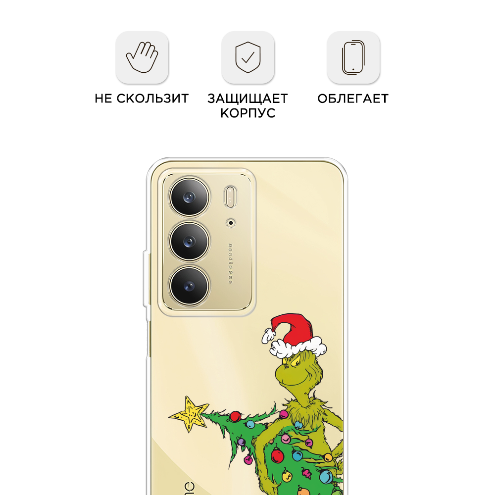 Чехол на Realme C75 4G / Реалми C75 4G с принтом Гринч с ёлкой 2, прозрачный информация: