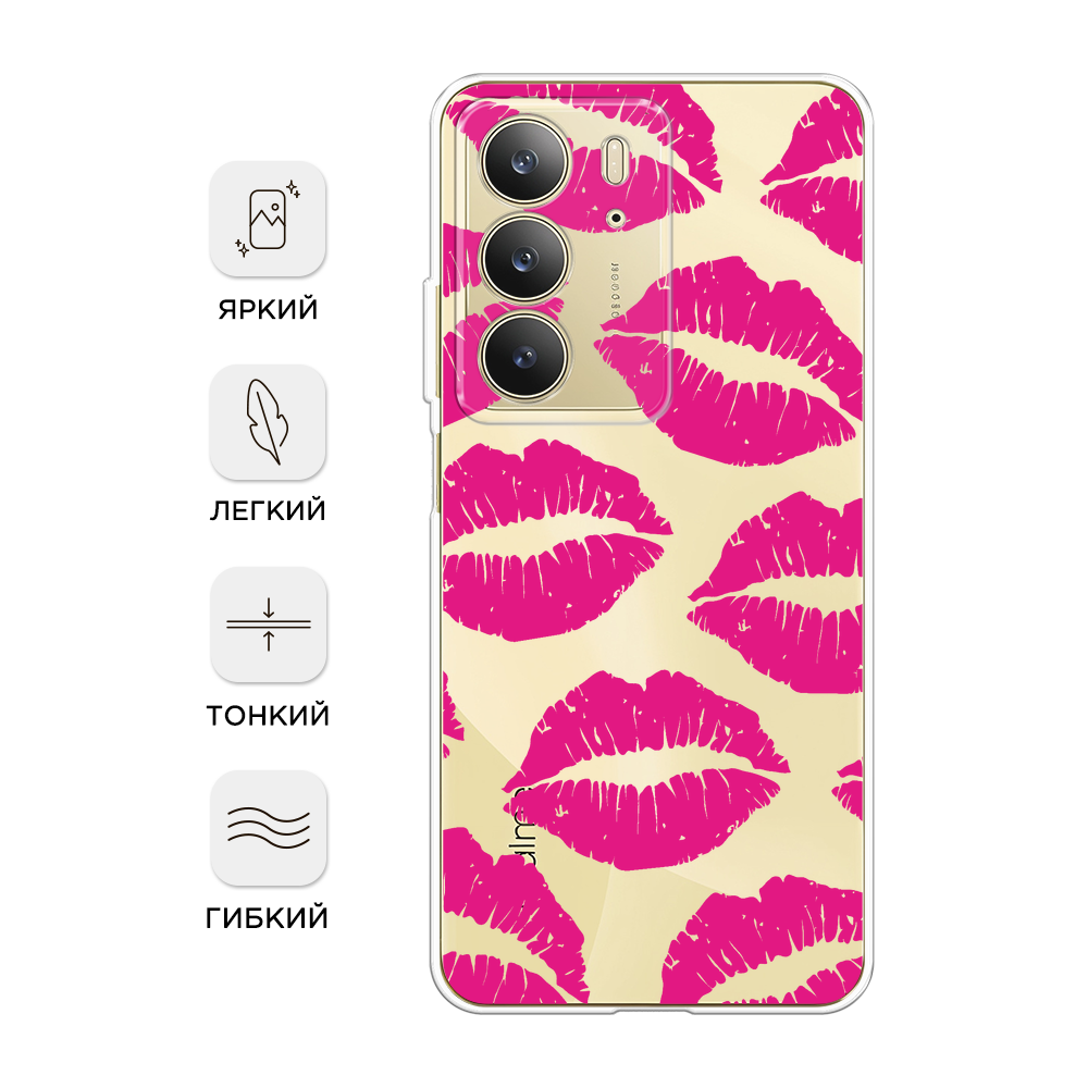 10 цен на Чехол на Realme C75 4G / Реалми C75 4G с принтом Ярко-розовая помада паттерн, прозрачный