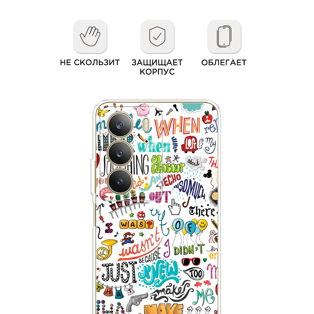 Отзывы на Чехол на Realme C75 4G / Реалми C75 4G с принтом Много надписей