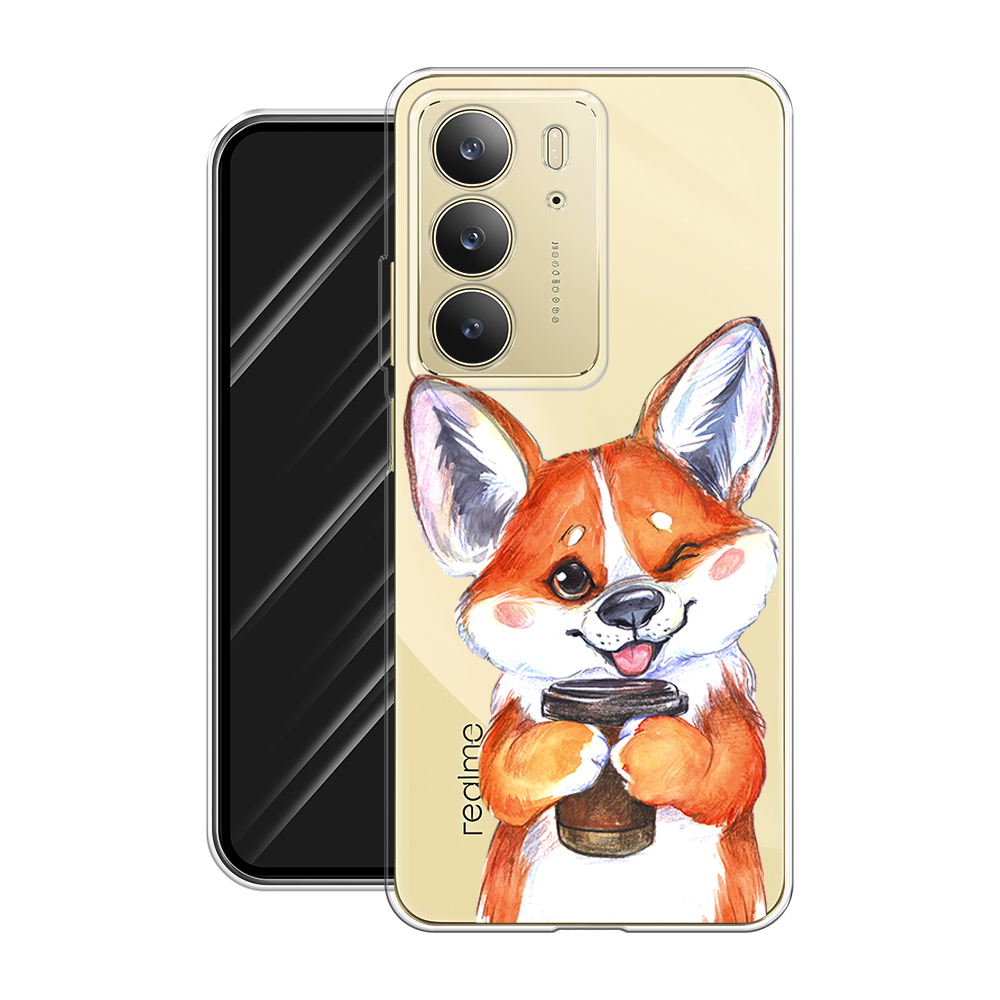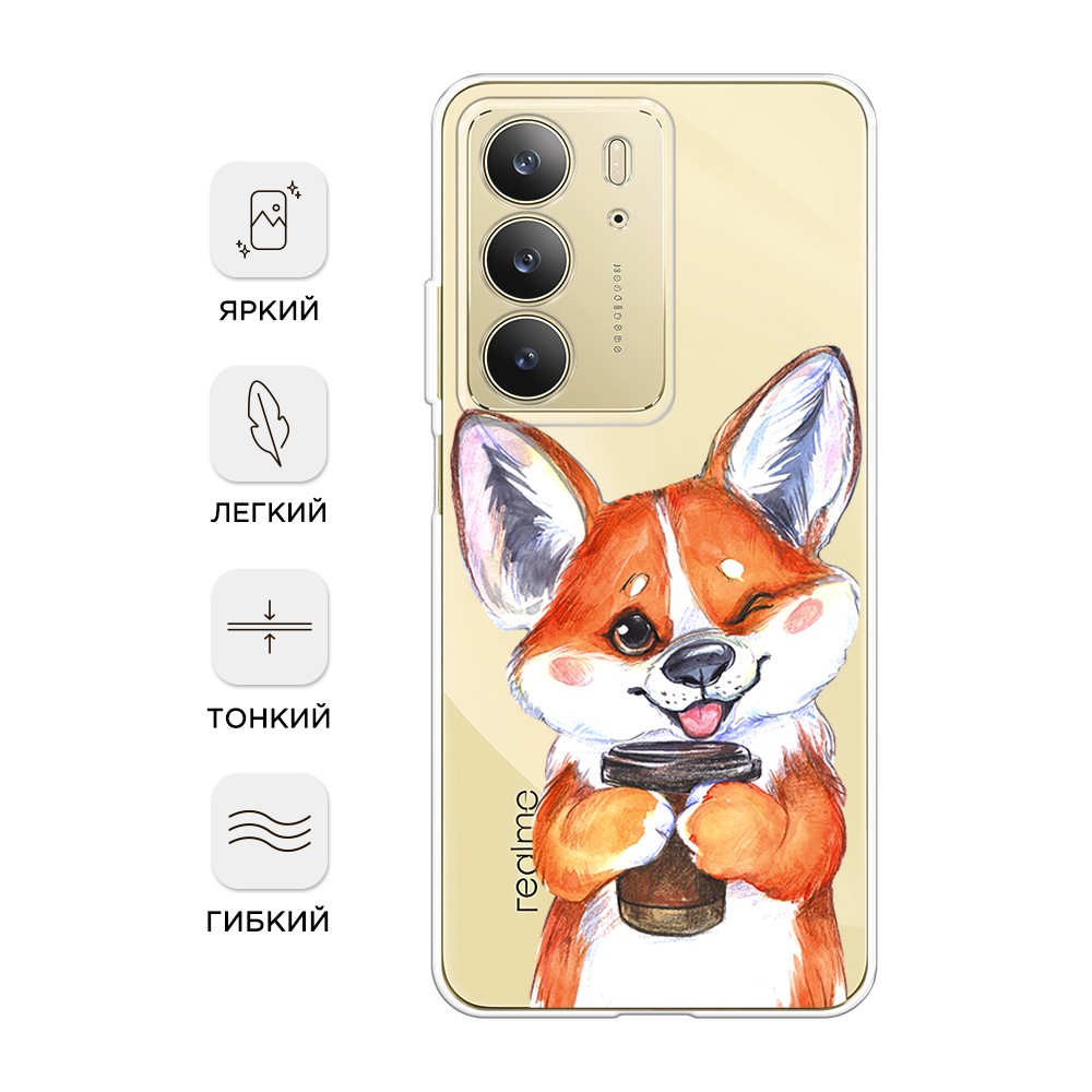 Чехол на Realme C75 4G / Реалми C75 4G с принтом Корги с кофе, прозрачный информация: