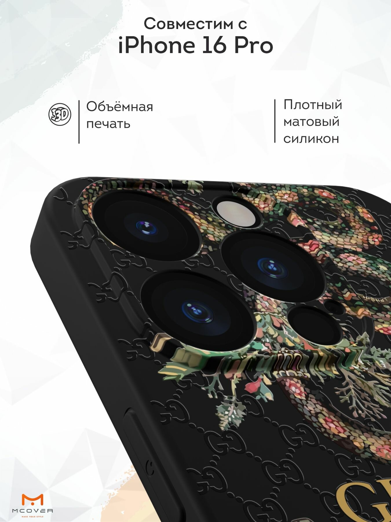Чехол Mcover с рисунком Гуччи змеи на iPhone 16 Pro, силиконовый, матовый, защита камеры информация: