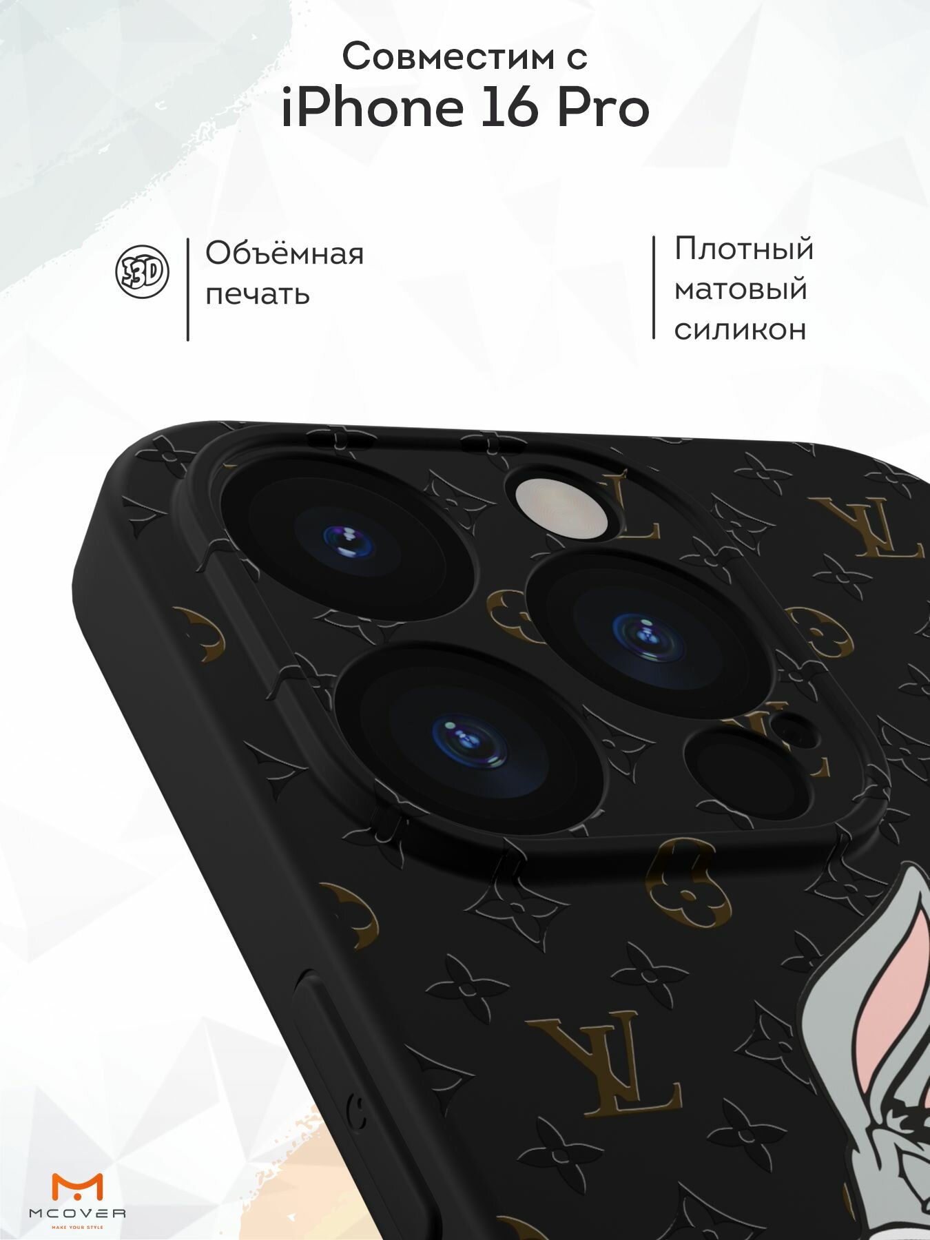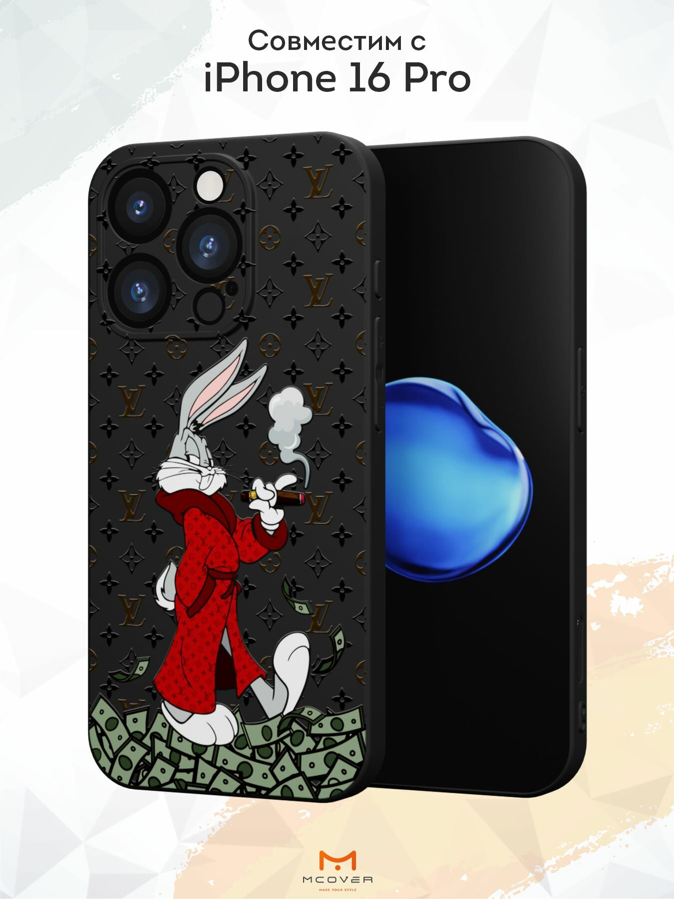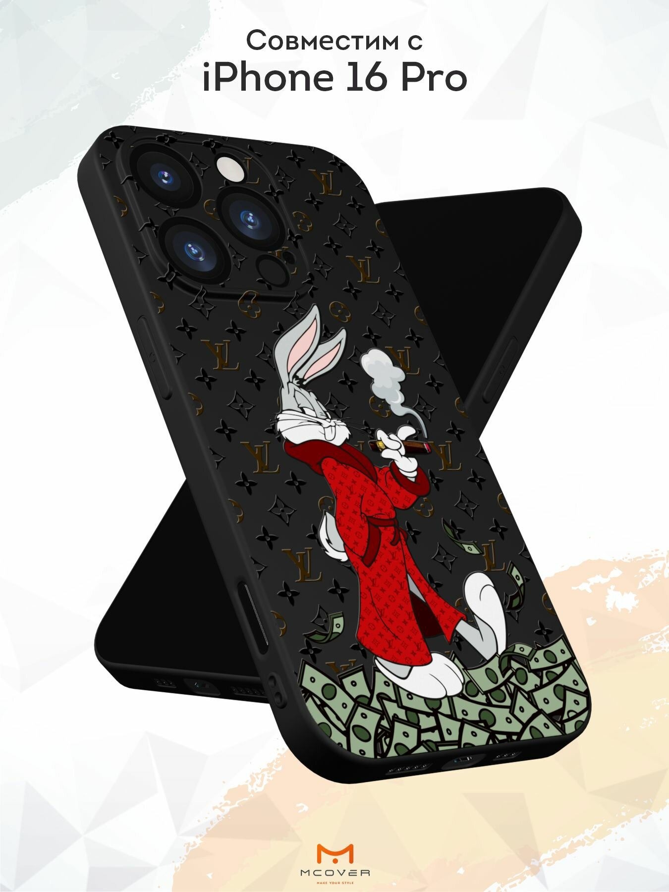 Чехол Mcover с рисунком Кролик с деньгами на iPhone 16 Pro, силиконовый, матовый, защита камеры информация: