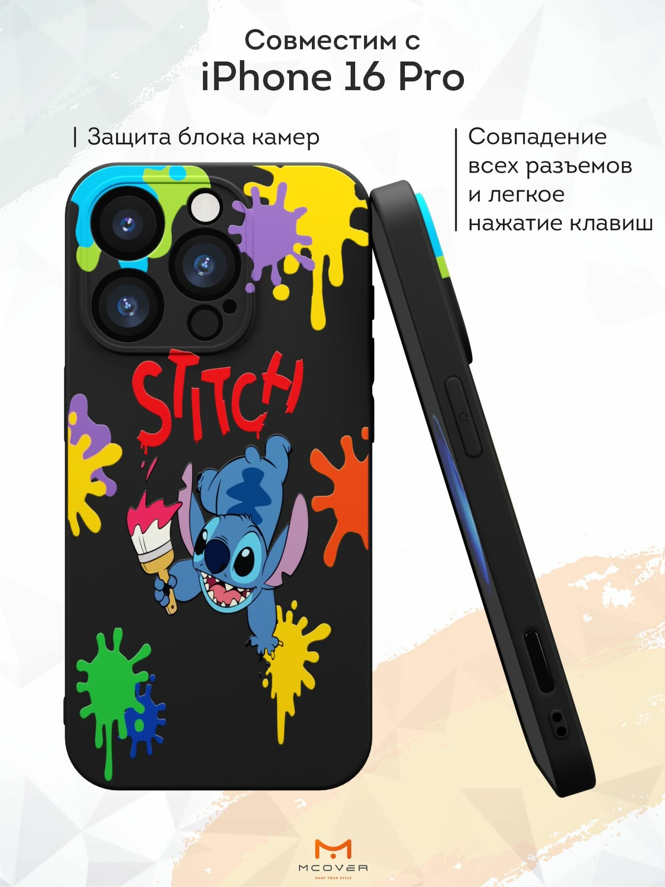 Чехол Mcover с рисунком Стич с краской на iPhone 16 Pro, силиконовый, матовый, защита камеры информация: