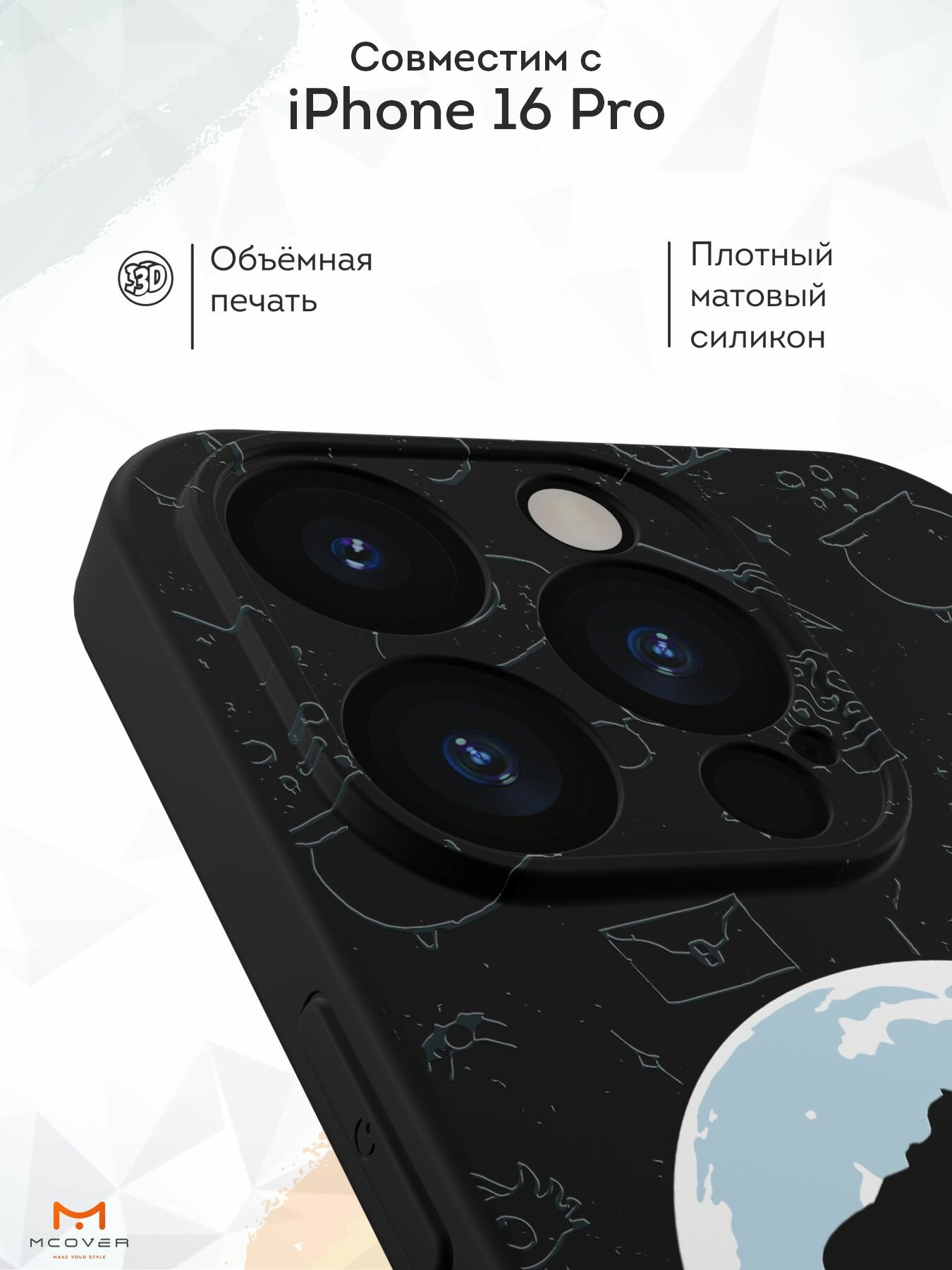 Чехол Mcover с рисунком Космический кот на iPhone 16 Pro, силиконовый, матовый, защита камеры 530 ₽