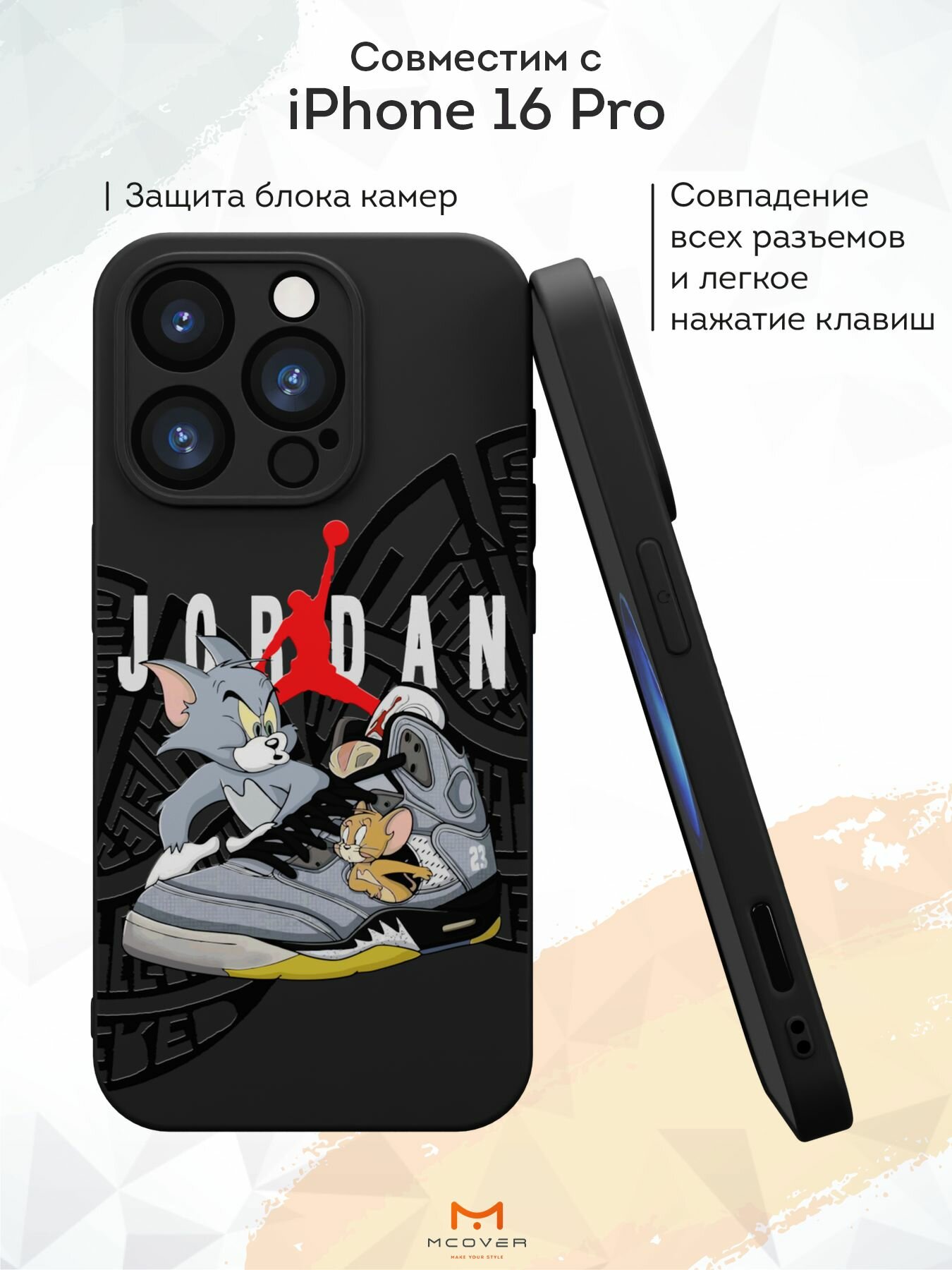 Чехол Mcover с рисунком Джордан, Том и Джерри на iPhone 16 Pro, силиконовый, матовый, защита камеры информация:
