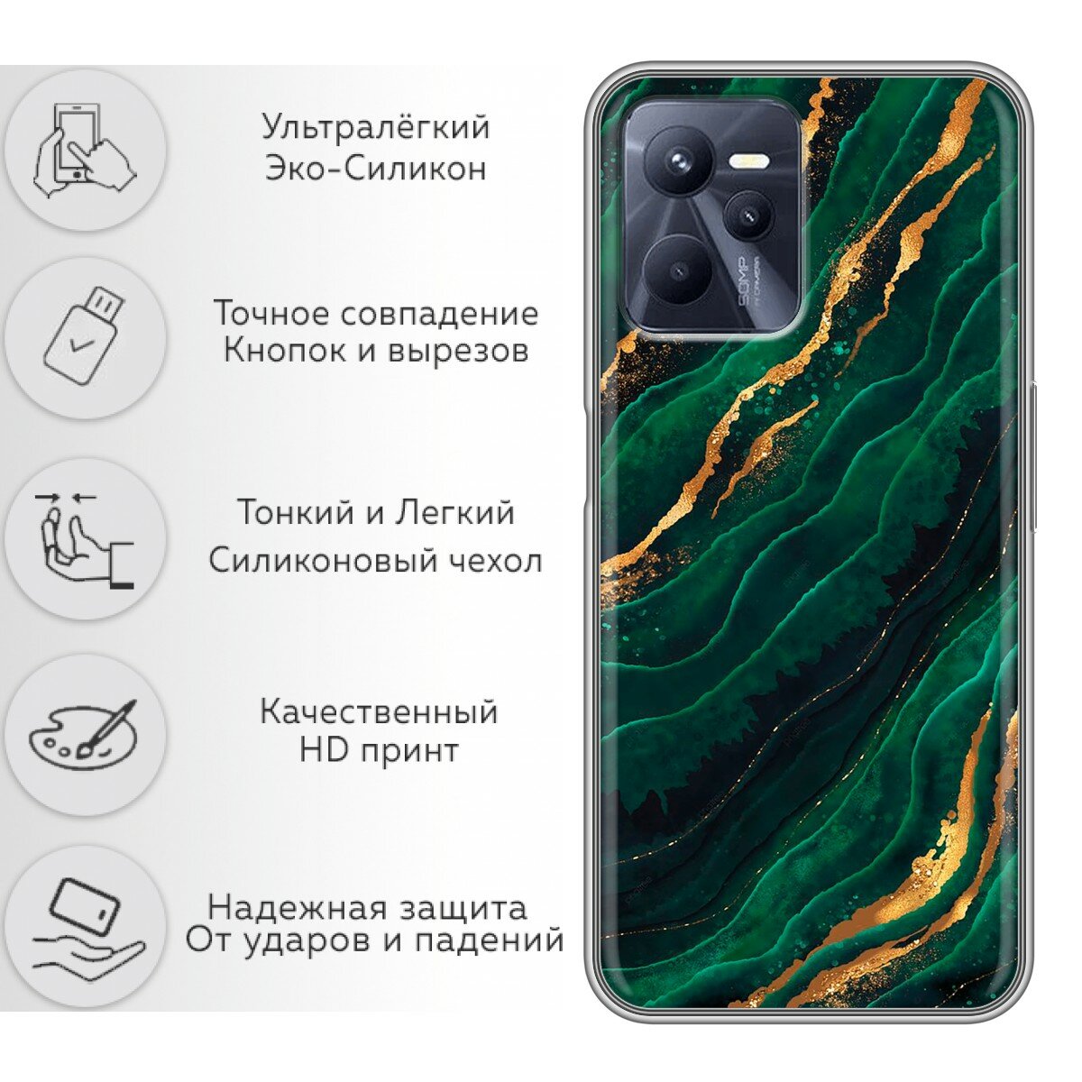 Отзывы на Чехол для Realme C35 с принтом Мрамор зеленое золото на Реалми С35