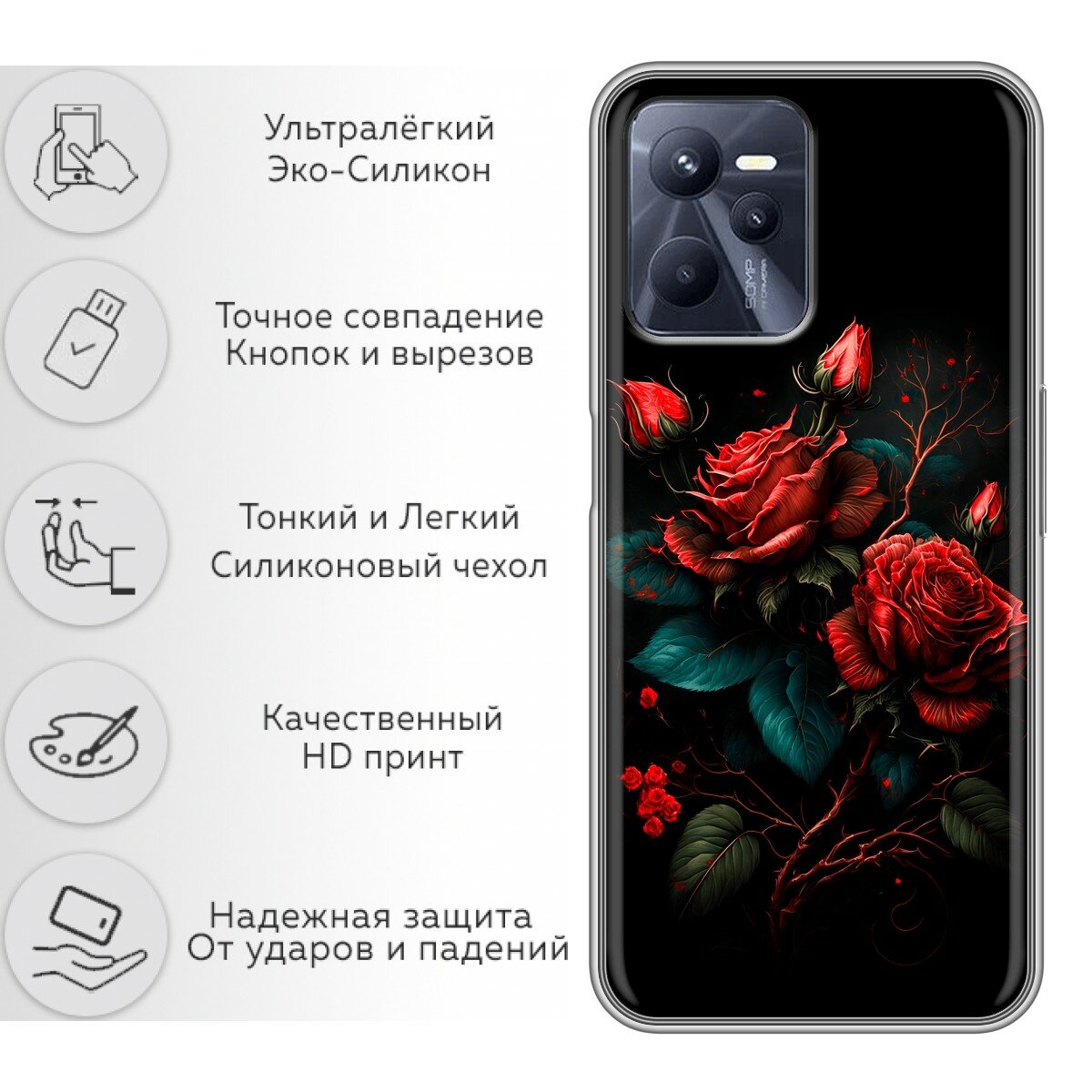 Чехол для Realme C35 с принтом Розы красные на Реалми С35 информация: