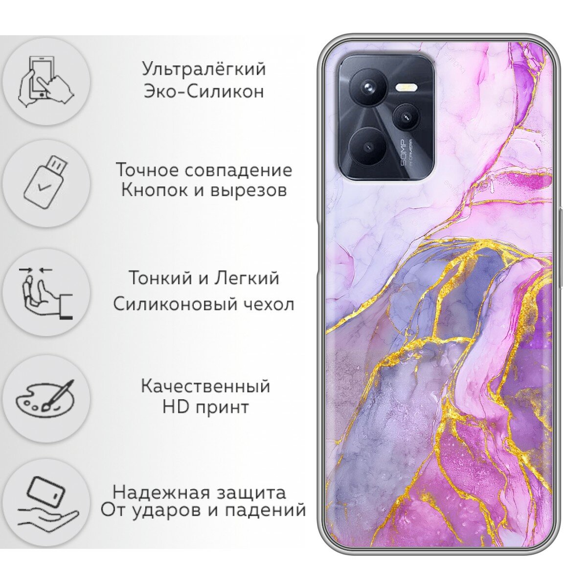 Чехол для Realme C35 с принтом Мрамор розовый на Реалми С35 информация: