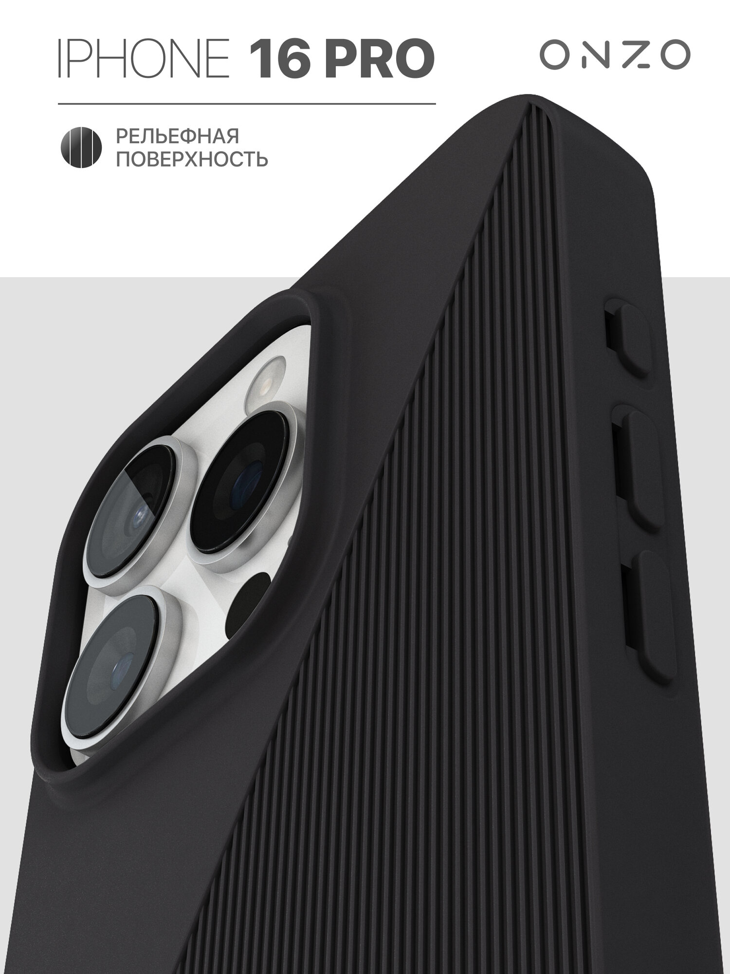 Защитный бампер на iPhone 16 Pro / Чехол на Айфон 16 Про ребристый, черный информация: