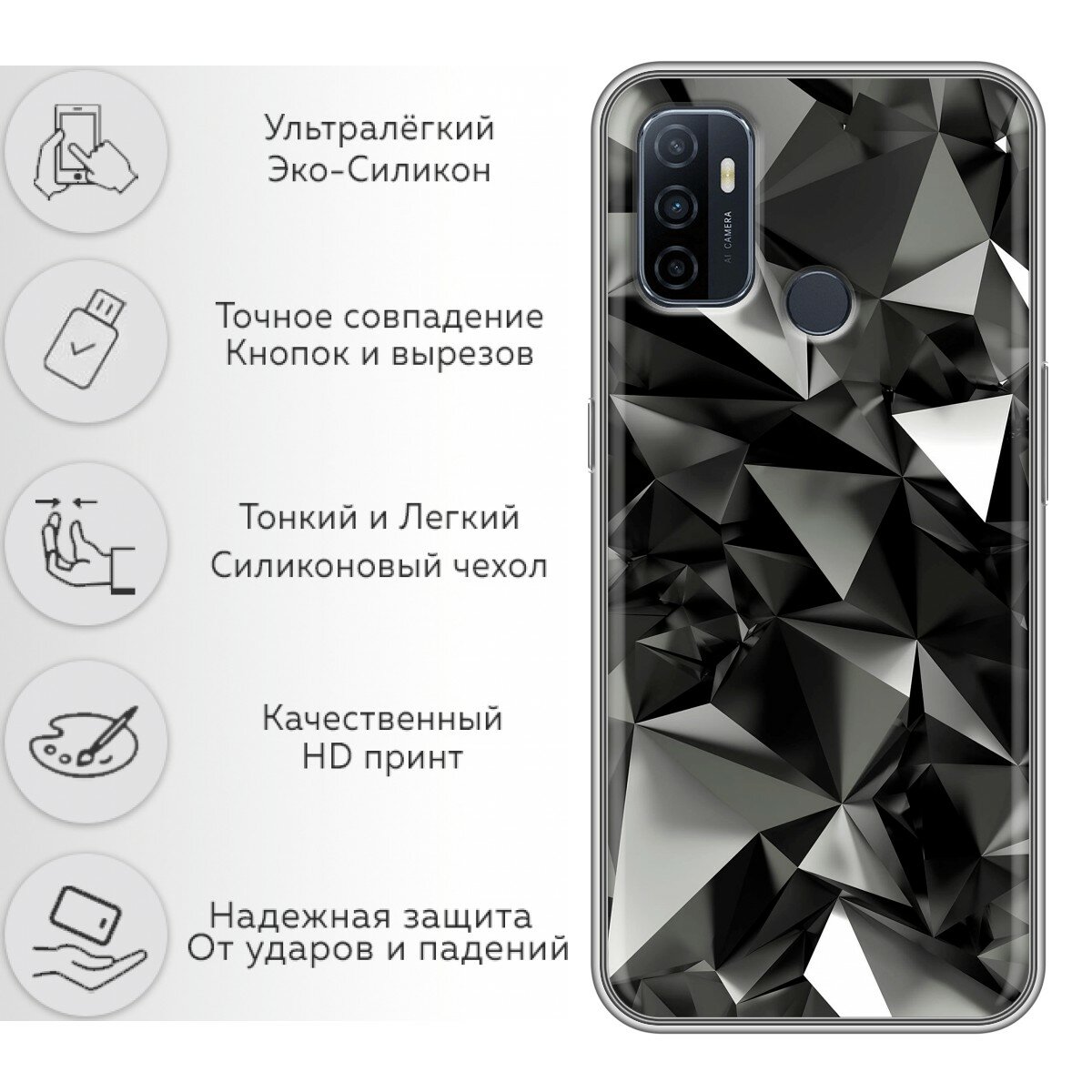 10 цен на Чехол для OPPO A53 с принтом черные кристаллы на Оппо А53