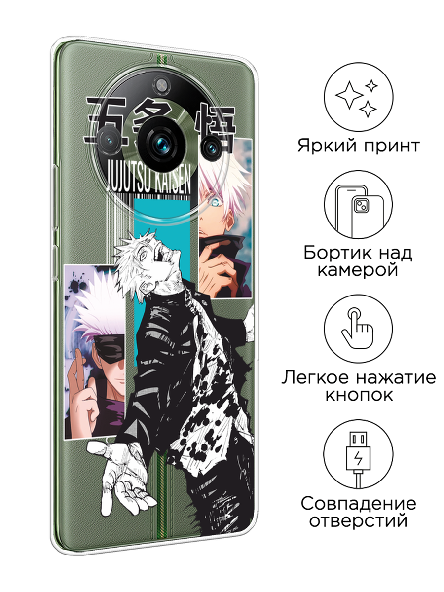 10 цен на Чехол на Realme 11 Pro / Реалми 11 Про с принтом Годжо Сатору white, прозрачный
