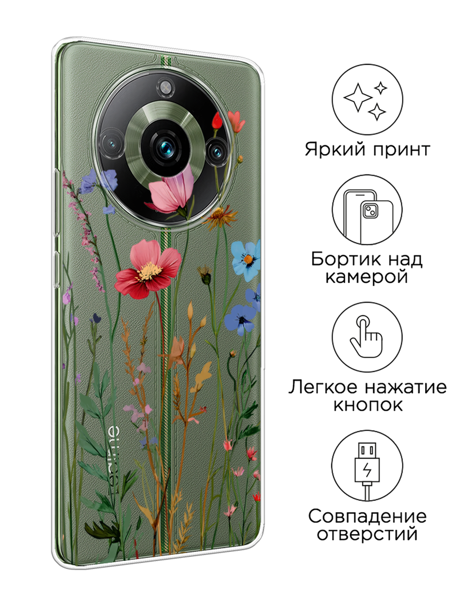 10 цен на Чехол на Realme 11 Pro / Реалми 11 Про с принтом Высокие цветы, прозрачный