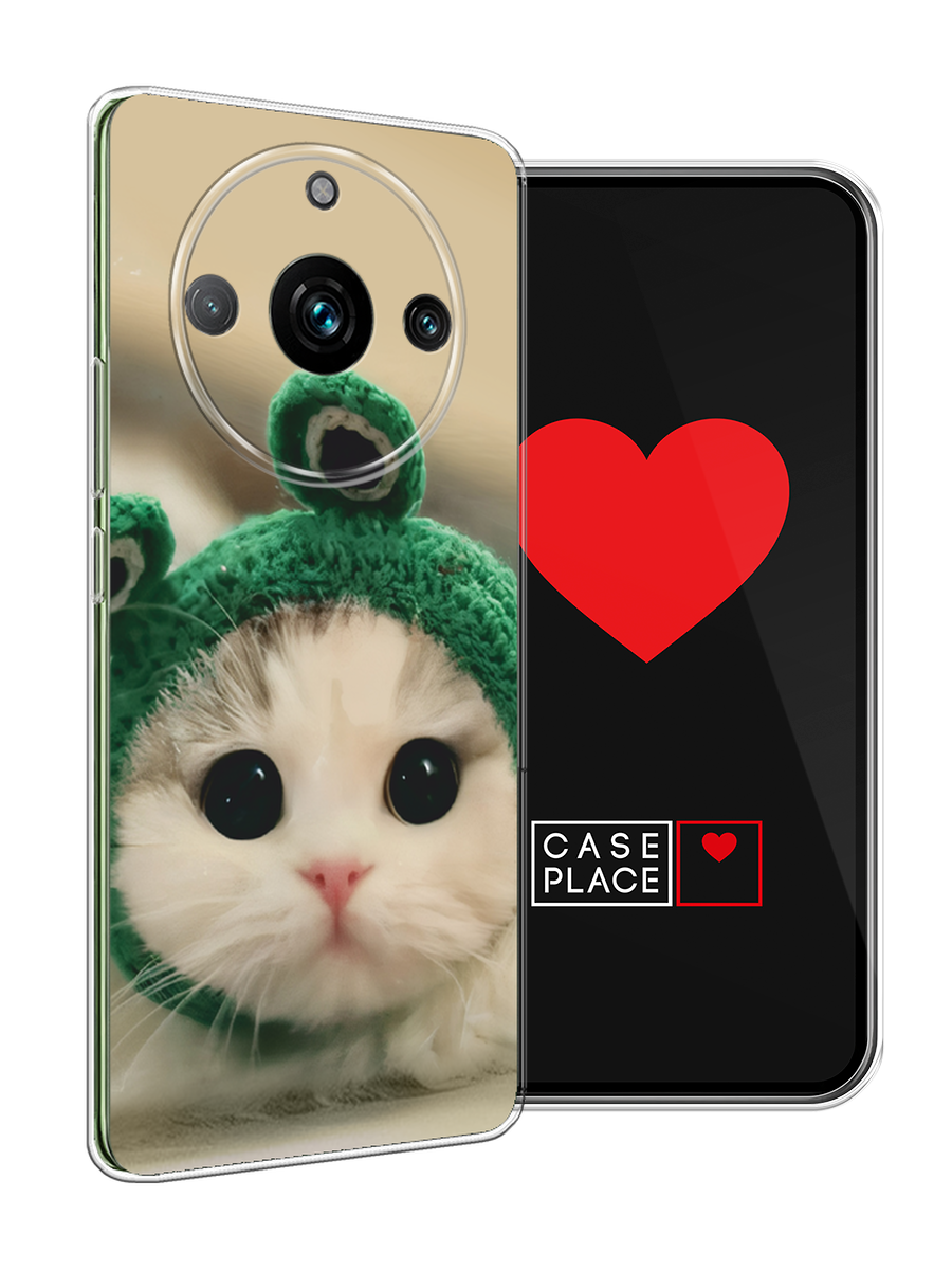 10 цен на Чехол на Realme 11 Pro / Реалми 11 Про с принтом Котёнок в лягушачьей шапочке