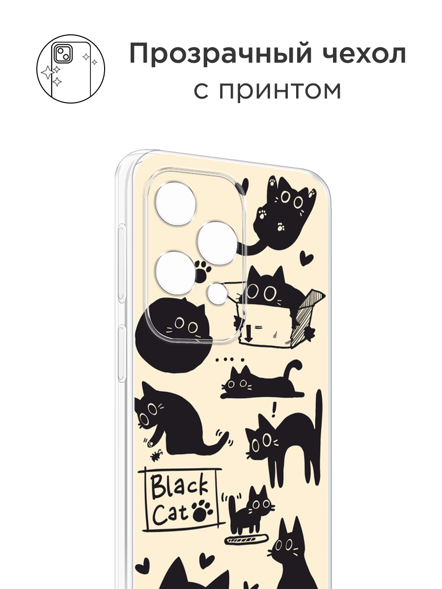 10 цен на Чехол на Realme 11 Pro / Реалми 11 Про с принтом Чёрный котик рисунки