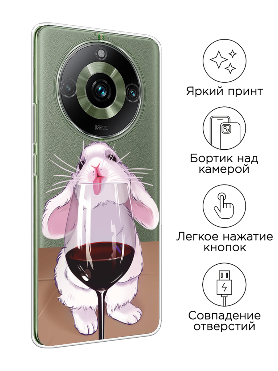 Отзывы на Чехол на Realme 11 Pro / Реалми 11 Про с принтом Кролик облизывает бокал, прозрачный