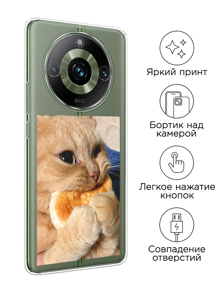 Отзывы на Чехол на Realme 11 Pro / Реалми 11 Про с принтом Котик кушает, прозрачный