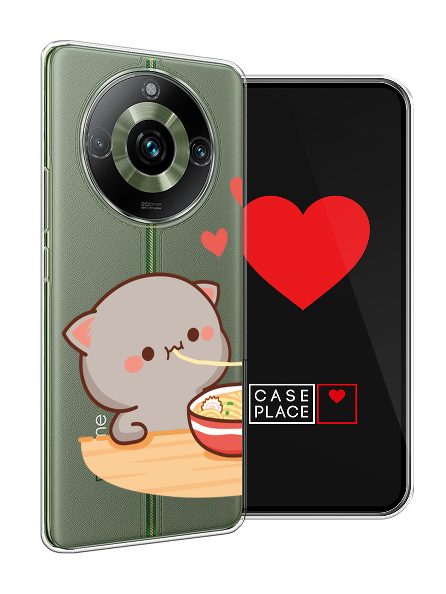 Чехол на Realme 11 Pro / Реалми 11 Про с принтом Котик кушает, прозрачный 609 ₽