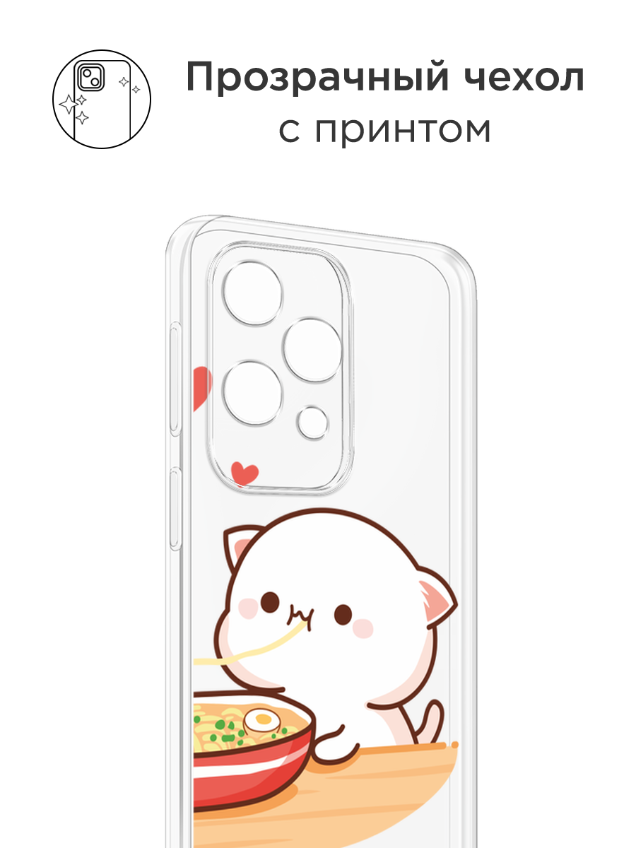 10 цен на Чехол на Realme 11 Pro / Реалми 11 Про с принтом Белый котик с лапшой, прозрачный