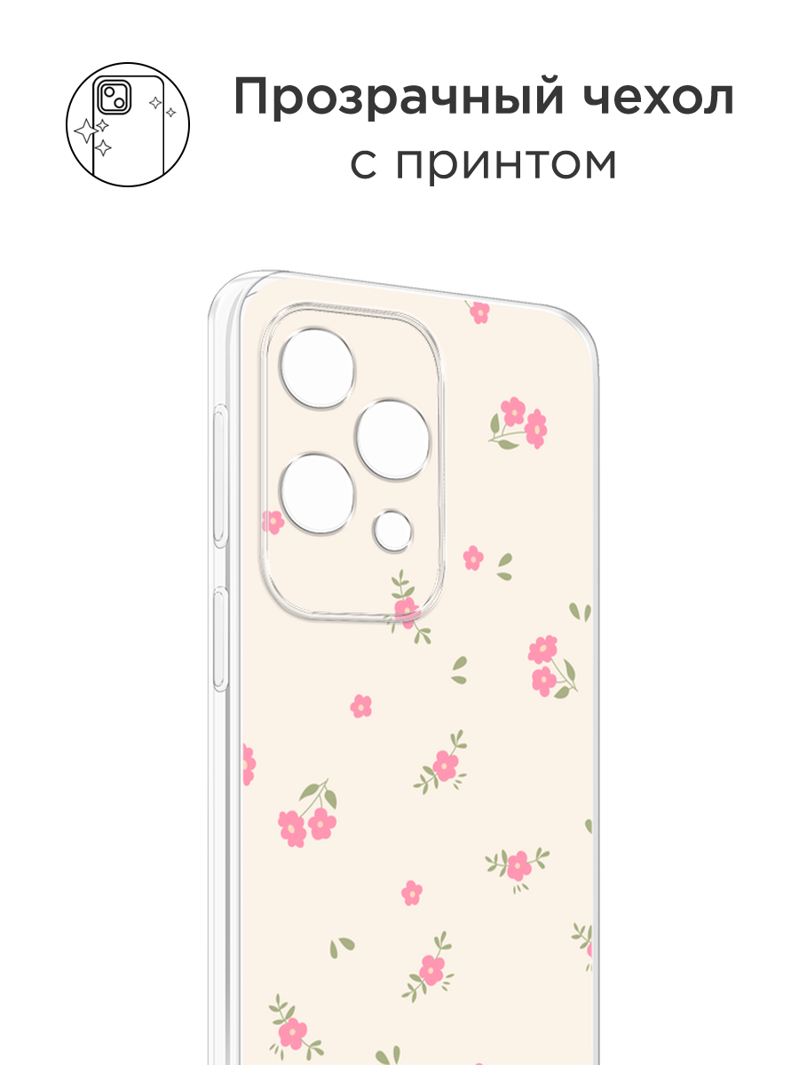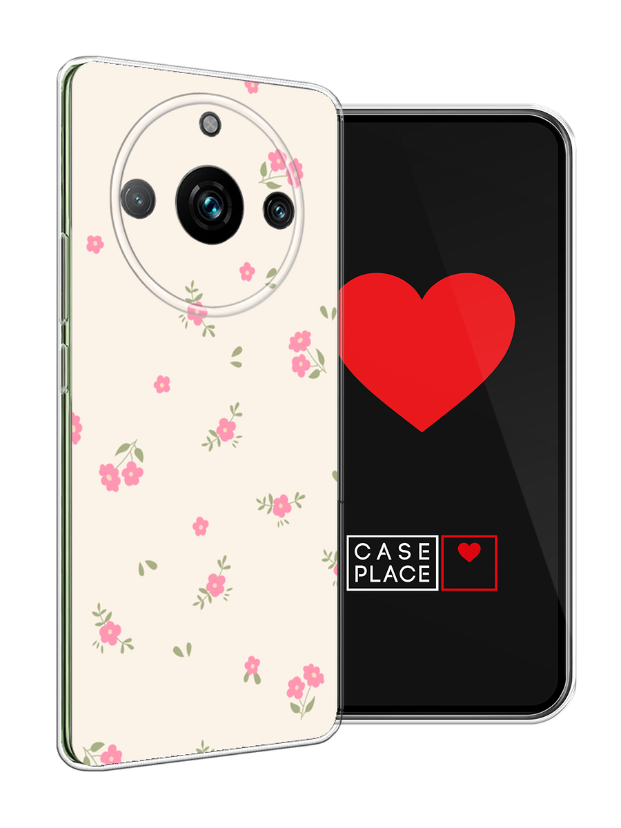 10 цен на Чехол на Realme 11 Pro / Реалми 11 Про с принтом Розовые цветочки на бежевом