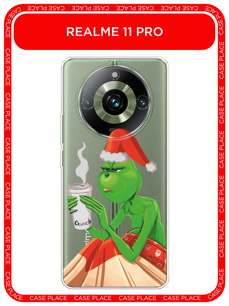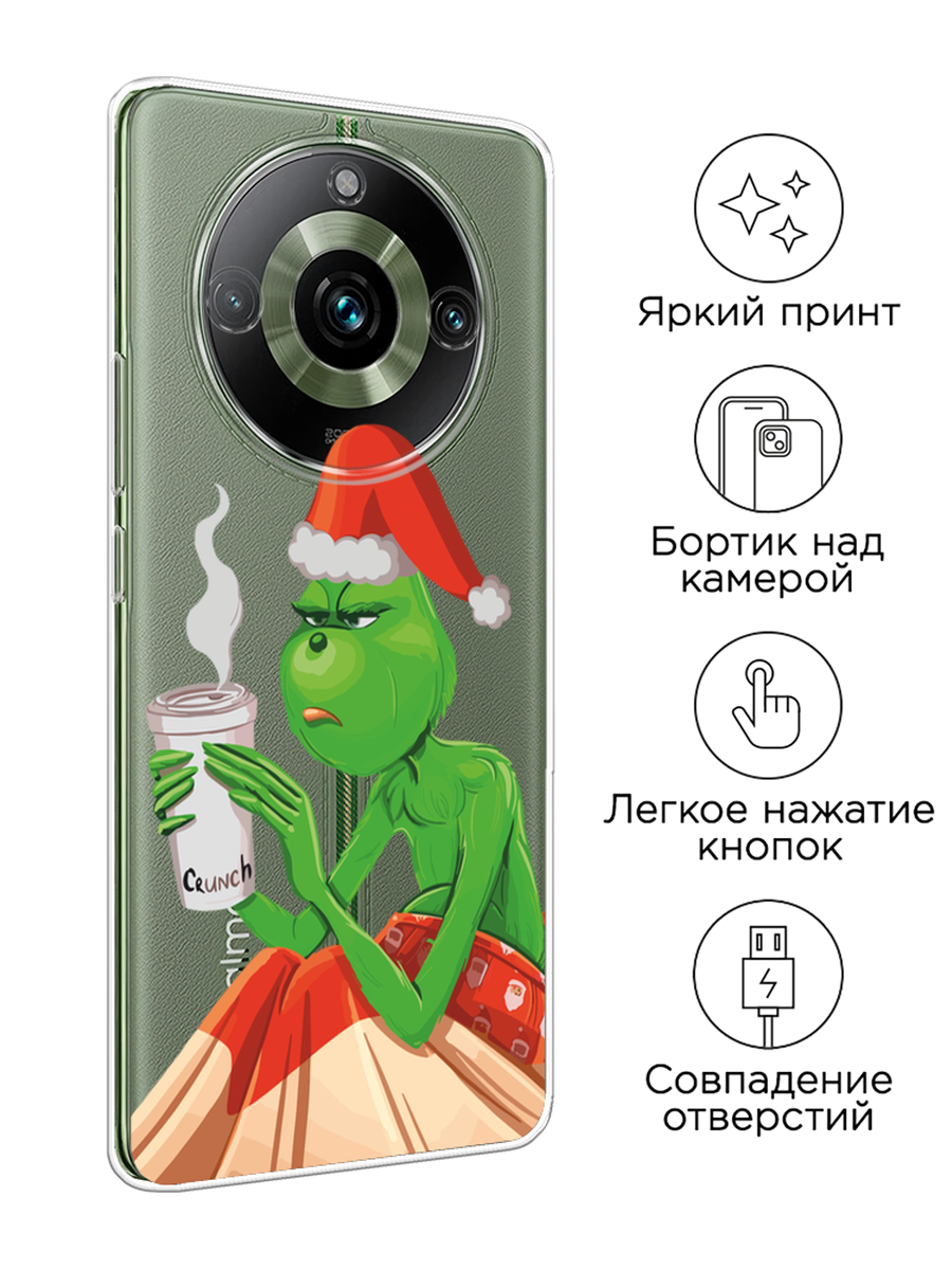 10 цен на Чехол на Realme 11 Pro / Реалми 11 Про с принтом Похититель Рождества отдыхает, прозрачный