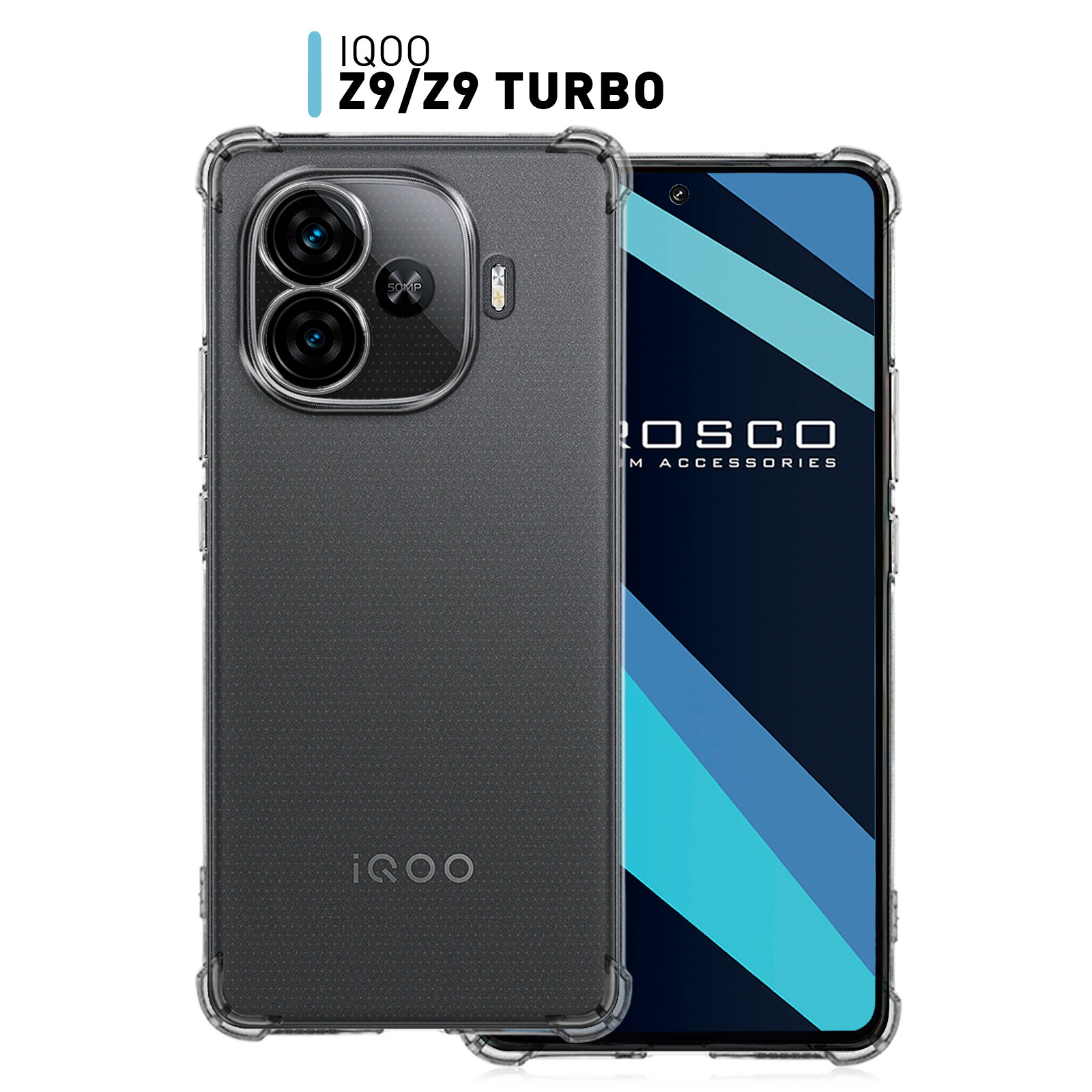 Противоударный силиконовый чехол Rosco на iQOO Z9 и Z9 Turbo (Айка з9 и з9 Турбо), прозрачный информация: