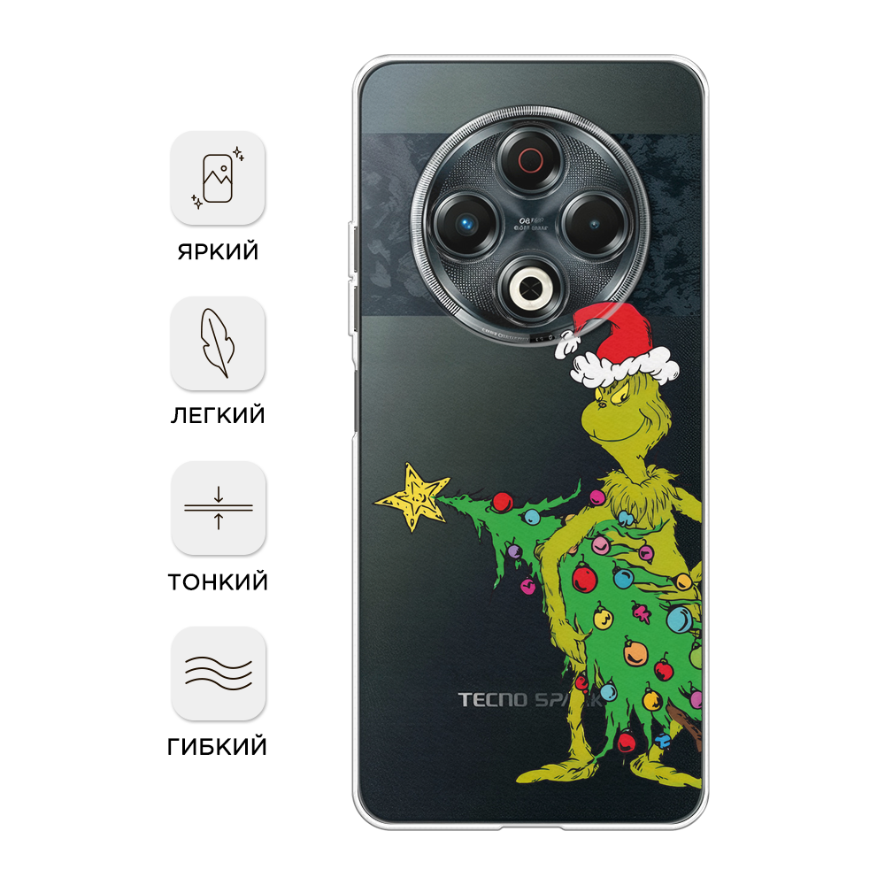 Чехол на Tecno Spark 30 / Текно Спарк 30 с принтом Гринч с ёлкой 2, прозрачный информация: