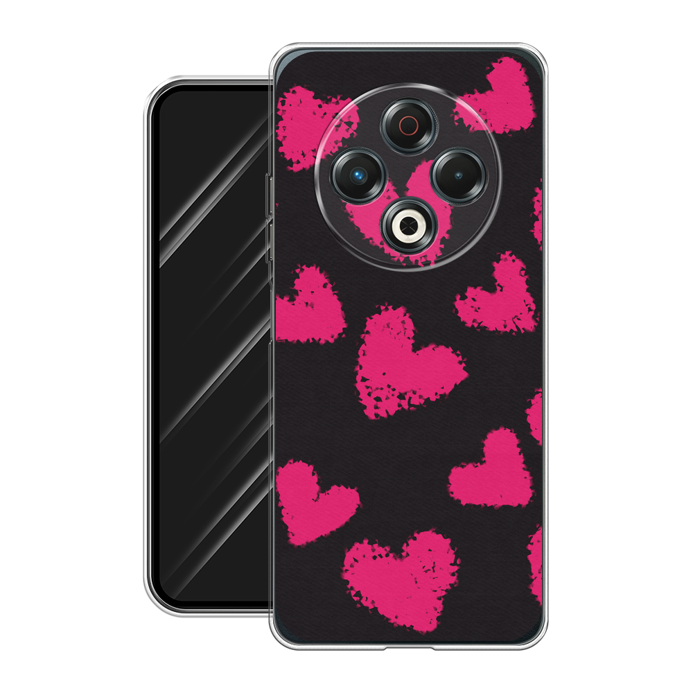 Чехол на Tecno Spark 30 / Текно Спарк 30 с принтом Малиновые сердечки на чёрном информация: