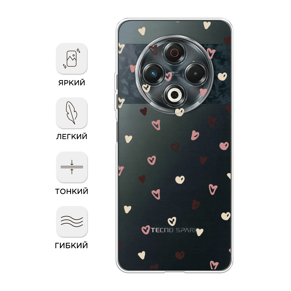 Отзывы на Чехол на Tecno Spark 30 / Текно Спарк 30 с принтом Сердечки паттерн рисунок, прозрачный