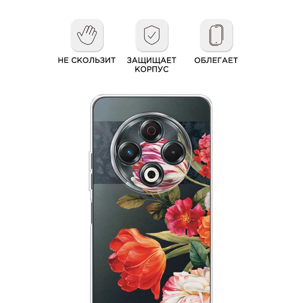 Отзывы на Чехол на Tecno Spark 30 / Текно Спарк 30 с принтом Весенний букет, прозрачный