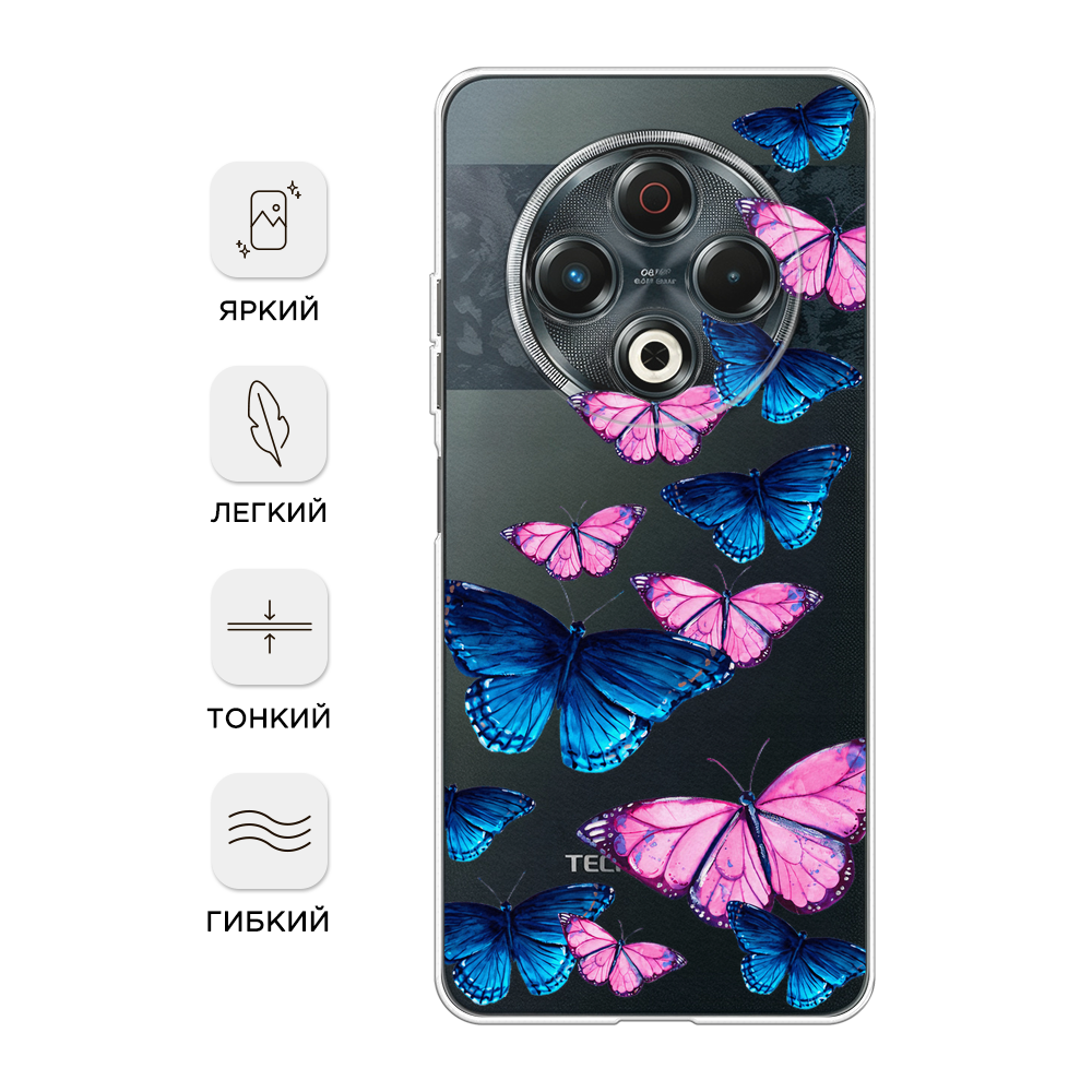 10 цен на Чехол на Tecno Spark 30 / Текно Спарк 30 с принтом Полет бабочек, прозрачный