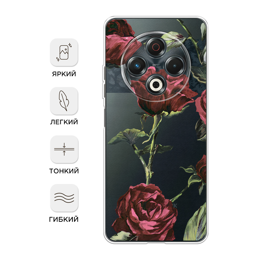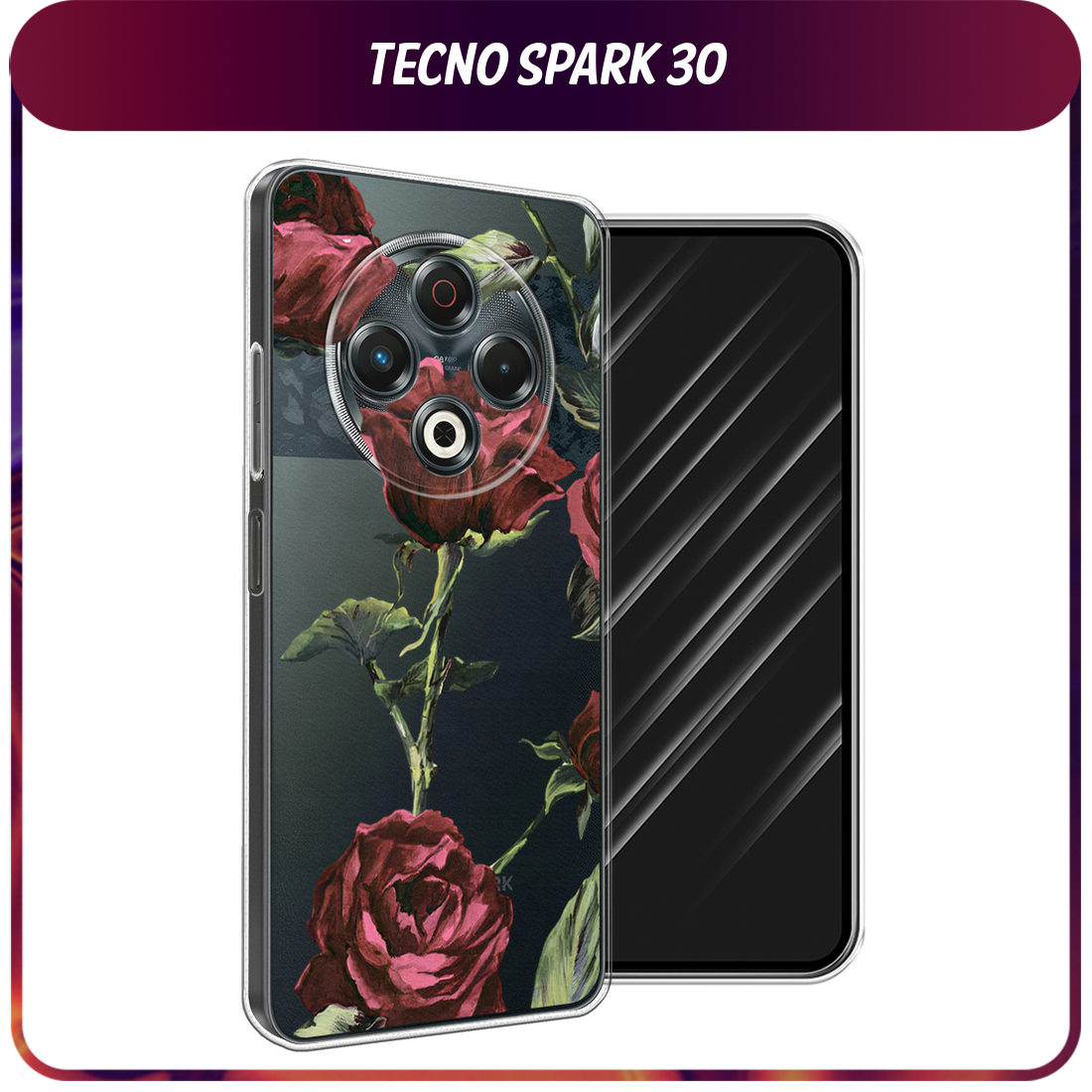 10 цен на Чехол на Tecno Spark 30 / Текно Спарк 30 с принтом Бордовые розы фон, прозрачный