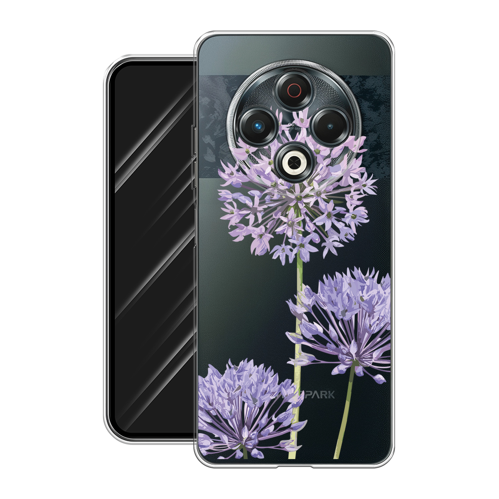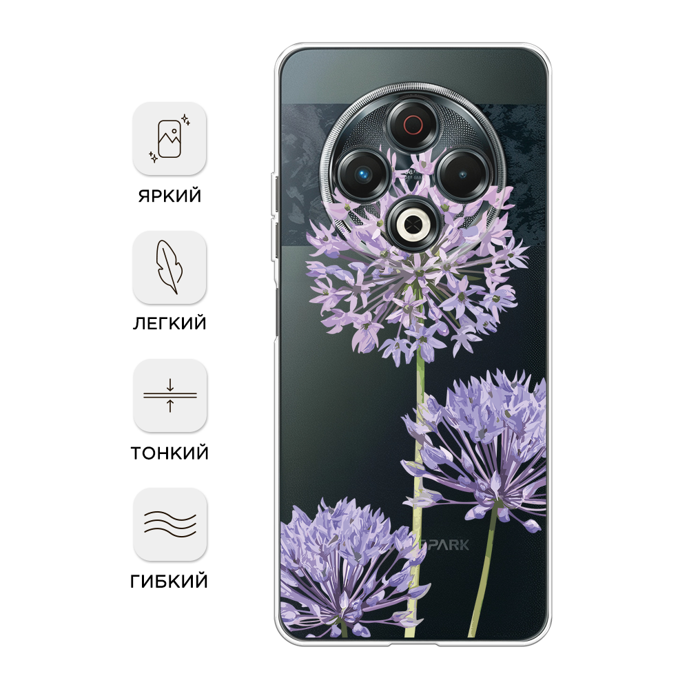 Чехол на Tecno Spark 30 / Текно Спарк 30 с принтом Сиреневые цветы акварель, прозрачный информация: